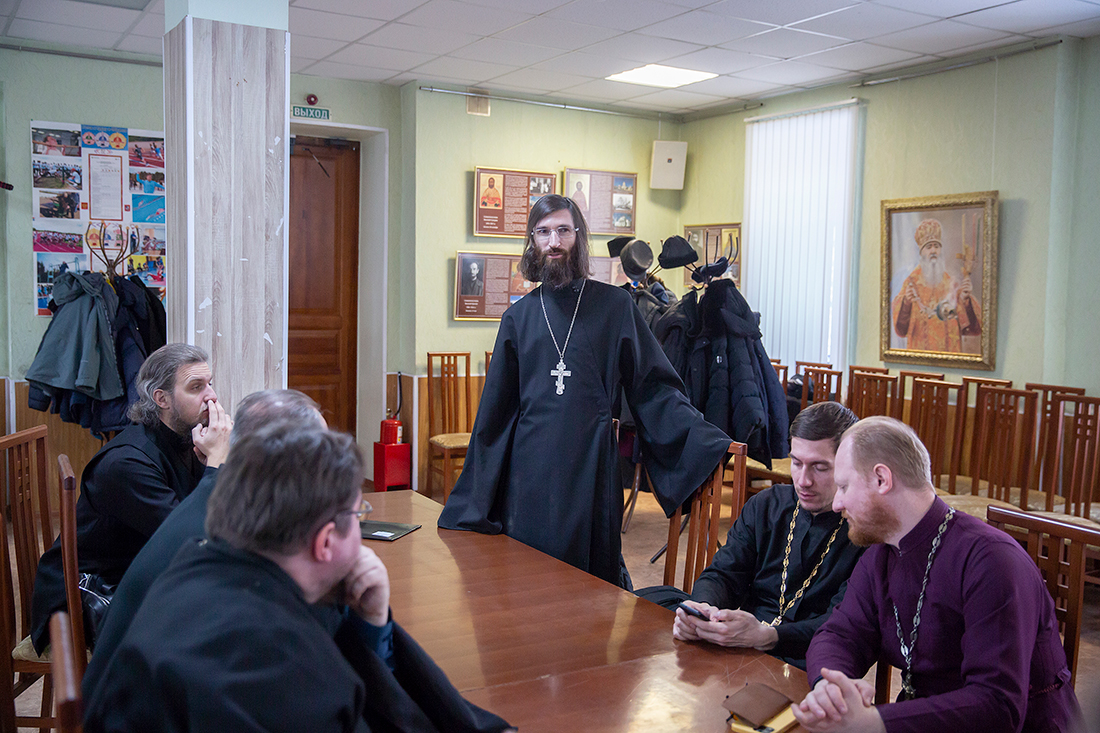 Во второй части совещания состоялся пастырский семинар, который провёл председатель епархиального отдела по благотворительности и социальному служению, настоятель Покровского храма города Щёлково протоиерей Алексий Никонов на тему: «Социальное служение Русской Православной Церкви в современных условиях».