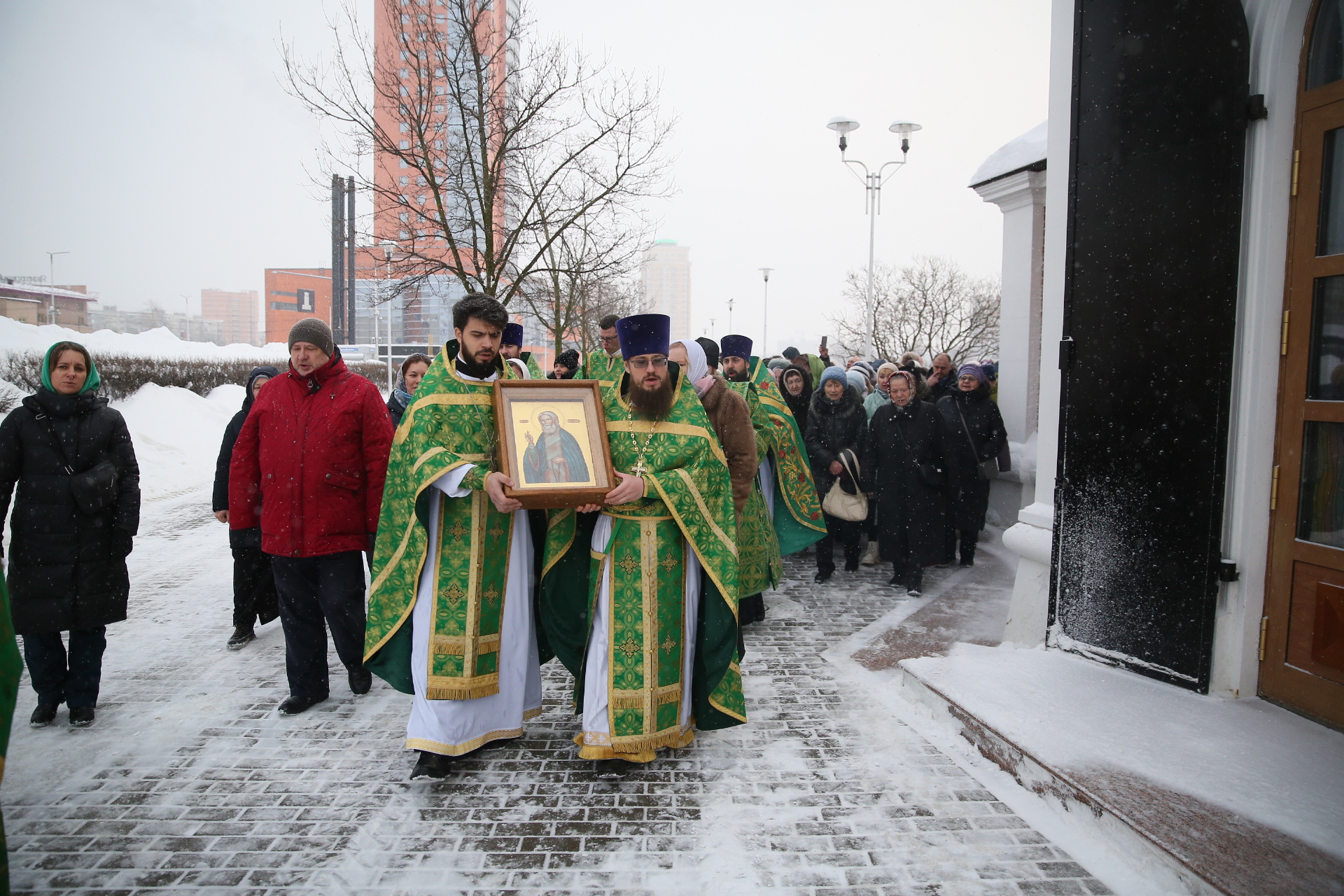 После Божественной литургии был совершён крестный ход вокруг храма, после которого отец Виталий обратился к духовенству и прихожанам со словами поздравления с престольным праздником.