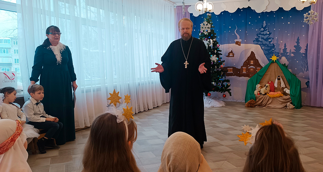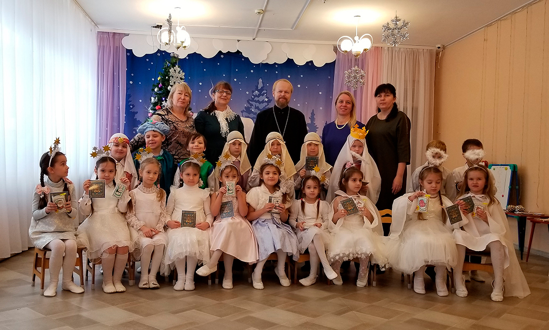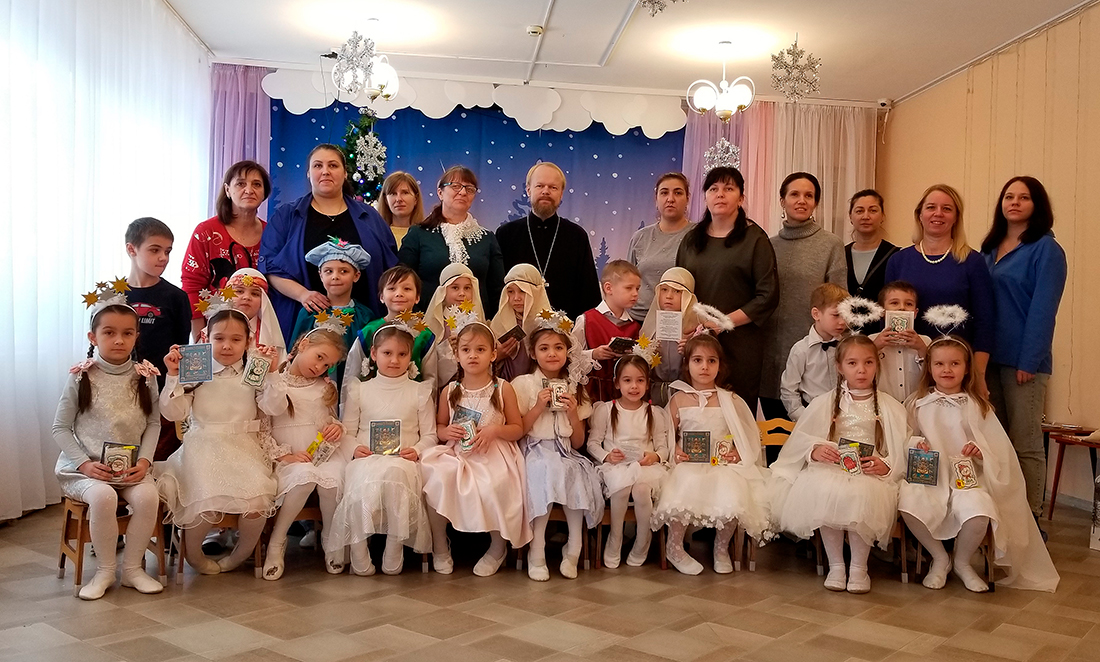 На мероприятии присутствовали заведующая учреждением Светлана Германовна Кононова, ответственный по вопросам семьи, защиты материнства и детства в Щёлковском благочинии священник Димитрий Медведев, родители воспитанников. Батюшка поздравил присутствующих со светлым праздником Рождества Христова и вручил дипломы детям-участникам прошедшего епархиального конкурса «Красота Божьего мира». В завершении мероприятия каждый маленький выступающий получил сладкий подарок и иконку Божией Матери «Знамение» Курская-Коренная.