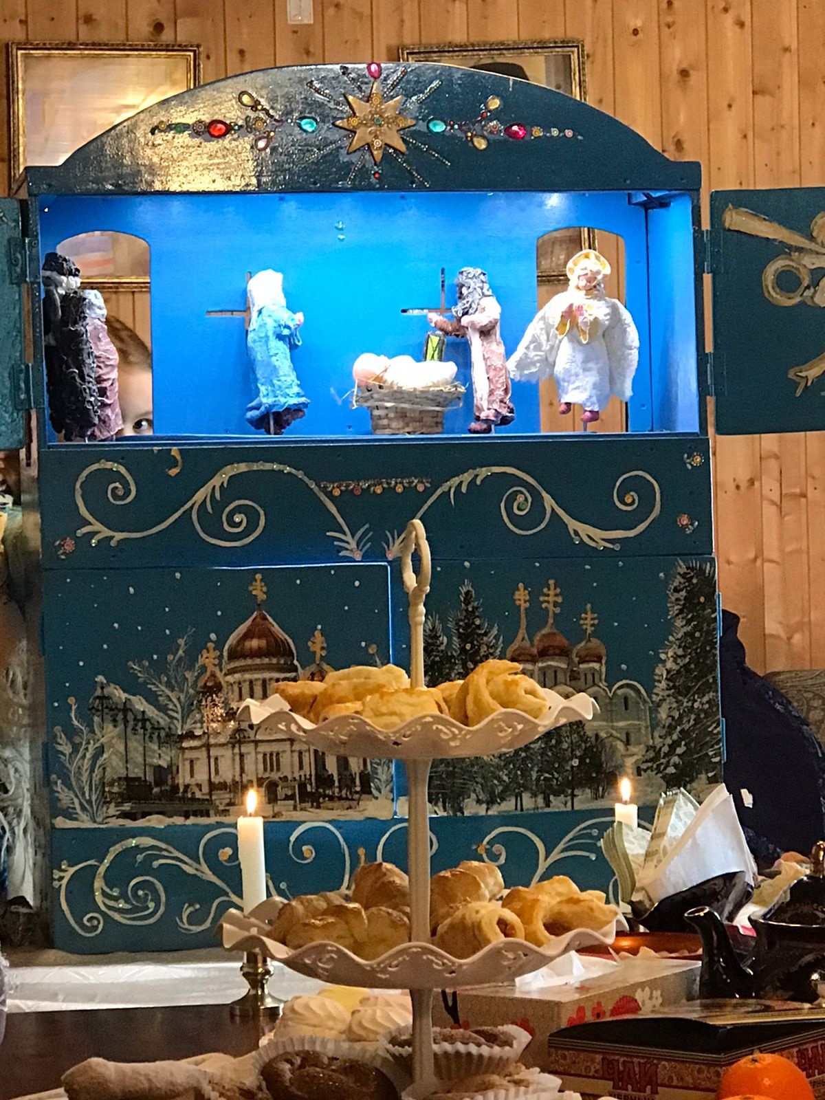 Сначала прошло чаепитие, где прихожане Покровского храма показали кукольный рождественский театр «батлейка», затем около вертепа участники совершили славление Христа, после чего праздничная процессия отправилась славить Христа на деревенских улицах и в домах местных жителей.