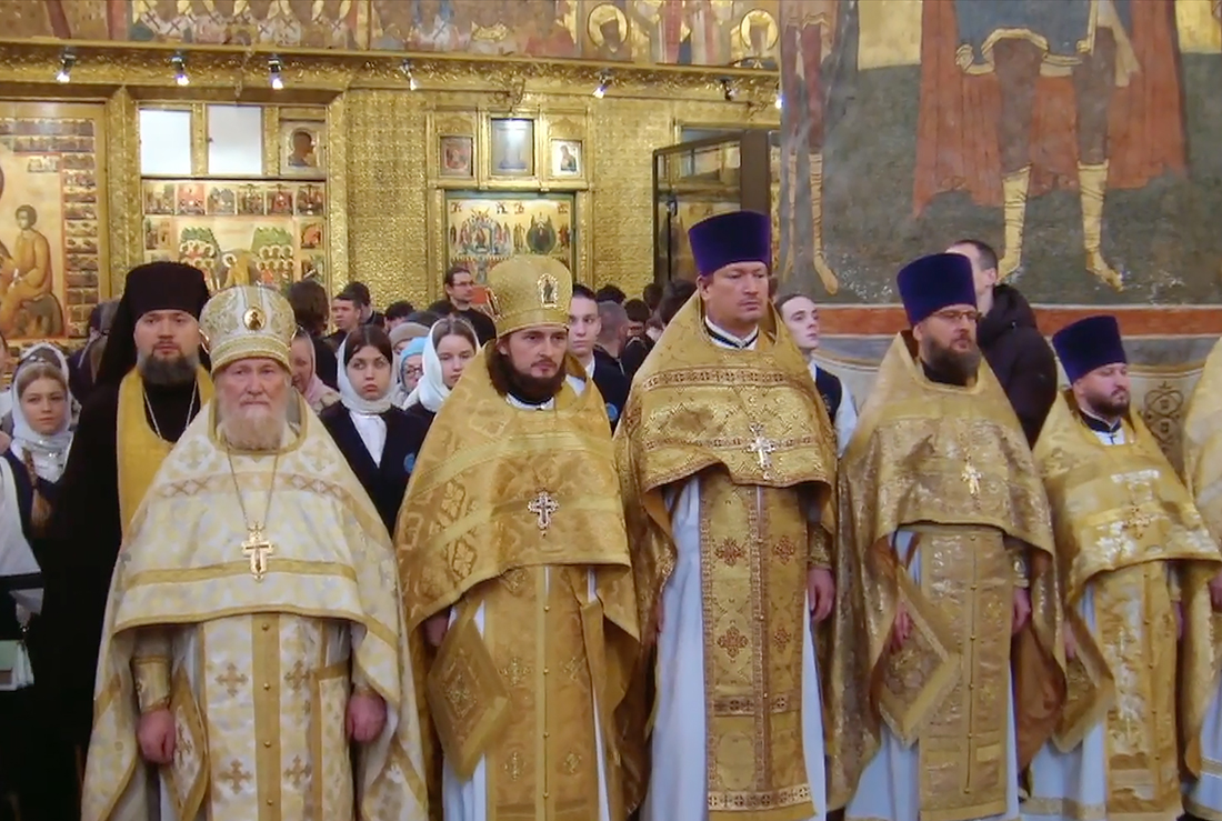 Богослужебные песнопения исполнили хор духовенства Московской митрополии и ансамбль солистов хора духовенства Екатеринбургской митрополии под управлением священника Сергия Голева.
