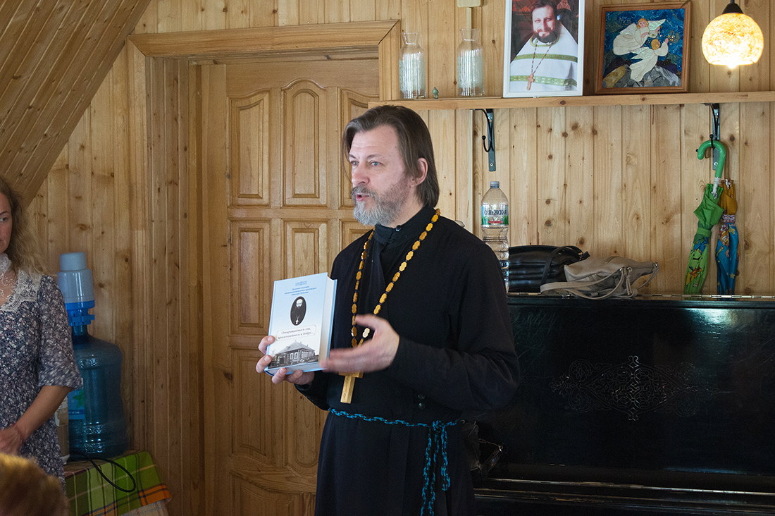 Настоятель храма священник Антоний Сенько рассказал об исследованиях трудов новомучеников и исповедников Русской Православной церкви и представил книгу трудов священномученика Николая Лебедева «Отвращайтесь зла, прилепляйтесь к добру» и зачитал несколько отрывков из книги. После чего последовало активное обсуждение прочитанных фрагментов с прихожанами храма.