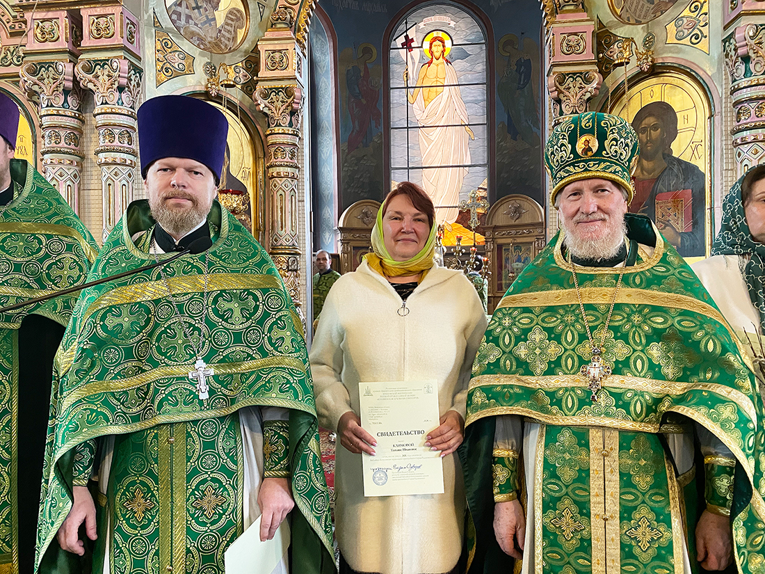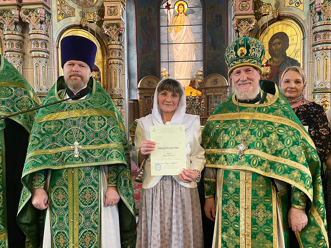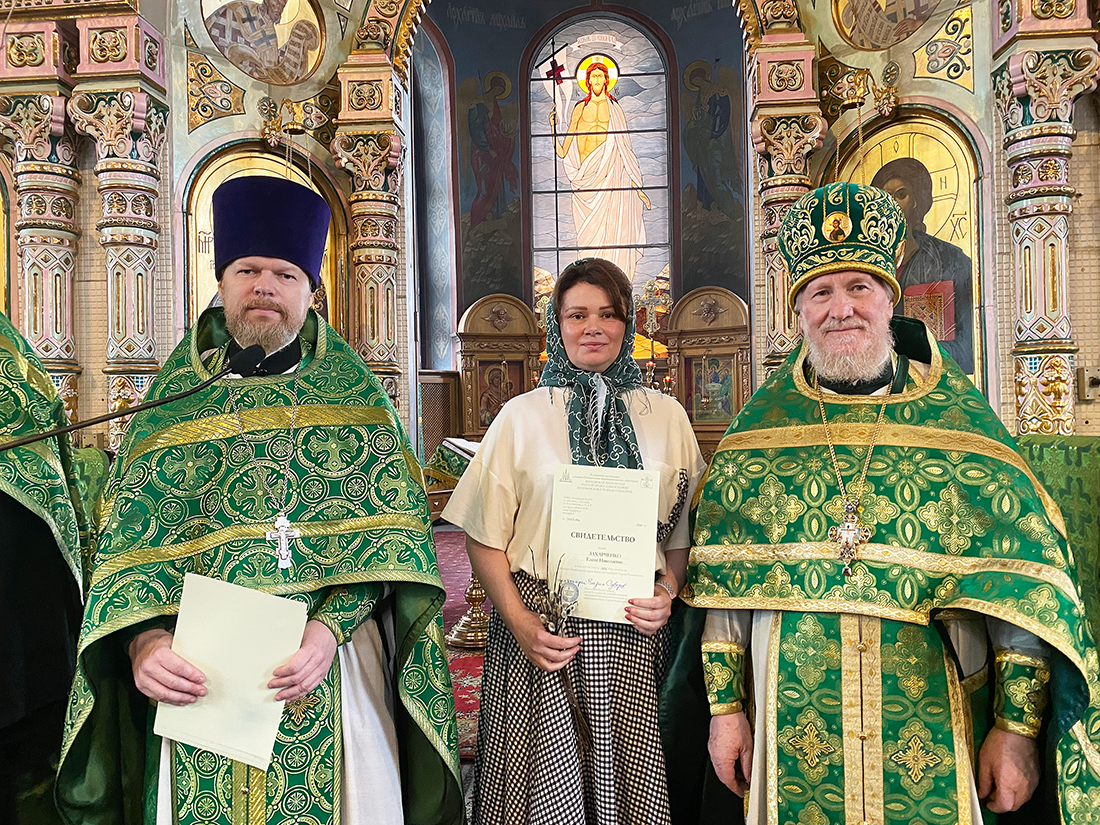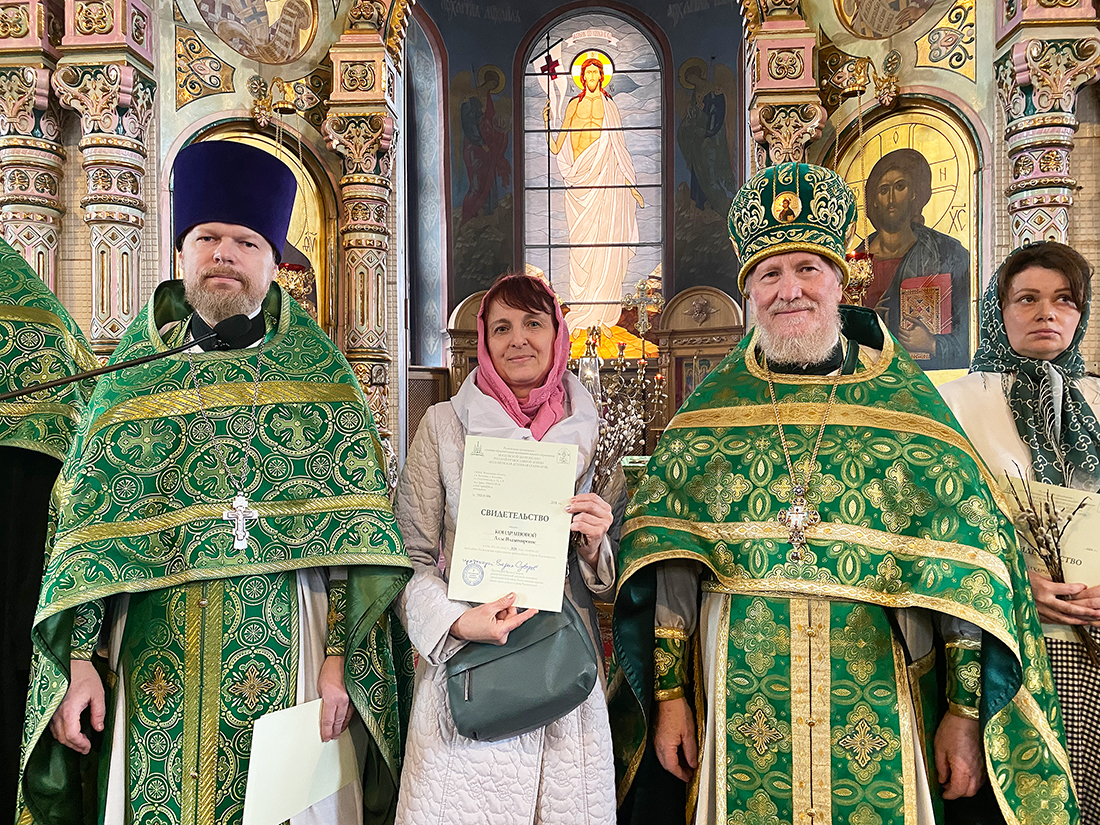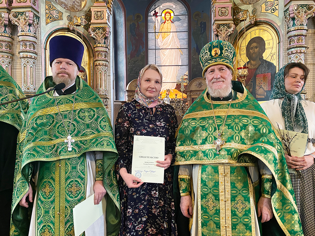 По окончании Божественной Литургии благочинный Щёлковского церковного округа протоиерей Андрей Ковальчук поздравил выпускников с окончанием обучения и вручил свидетельства за подписью ректора Коломенской духовной семинарии протоиерея Вадима Суворова. Мероприятие продолжилось благодарственным молебном, который отслужил руководитель отделения курсов священник Димитрий Медведев, и праздничным чаепитием.