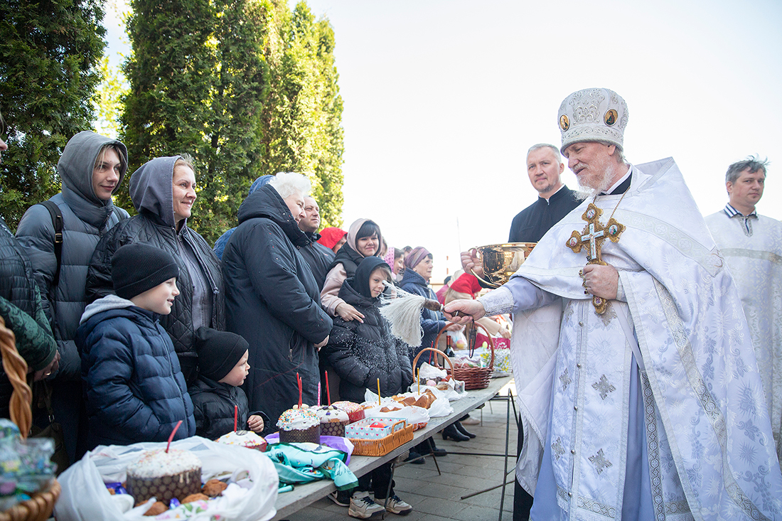 По заамвонной молитве отец Андрей совершил освящение хлебов и прочитал молитву о мире на Святой Земле, совершаемую по традиции ежегодно в Великую Субботу.