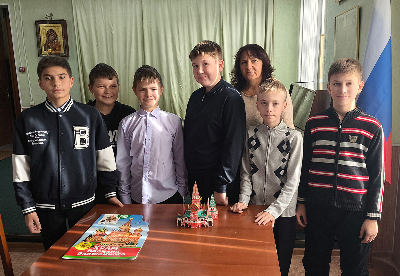 Под руководством преподавателя изостудии Светланы Викторовны Гришкиной ребята собрали макет Храма Василия Блаженного (Покровского собора), узнали об истории его создания.