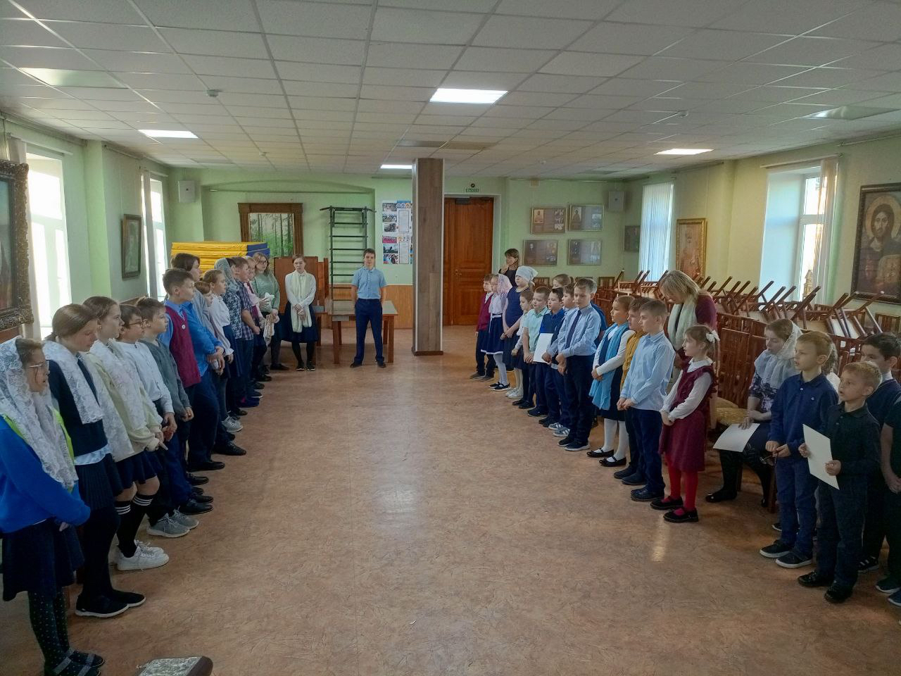 Отец Роман увлекательно поведал ребятам о церковной музыке, песнопениях, общей молитве за богослужением, видах богослужебных песнопений и тех формах, которые они имеют. Конечно же, говорить о музыке без примеров невозможно! На уроке прозвучали прекрасные образцы исполнения богослужебных песнопений, позволившие собравшимся более ясно понять всю красоту церковной музыки!