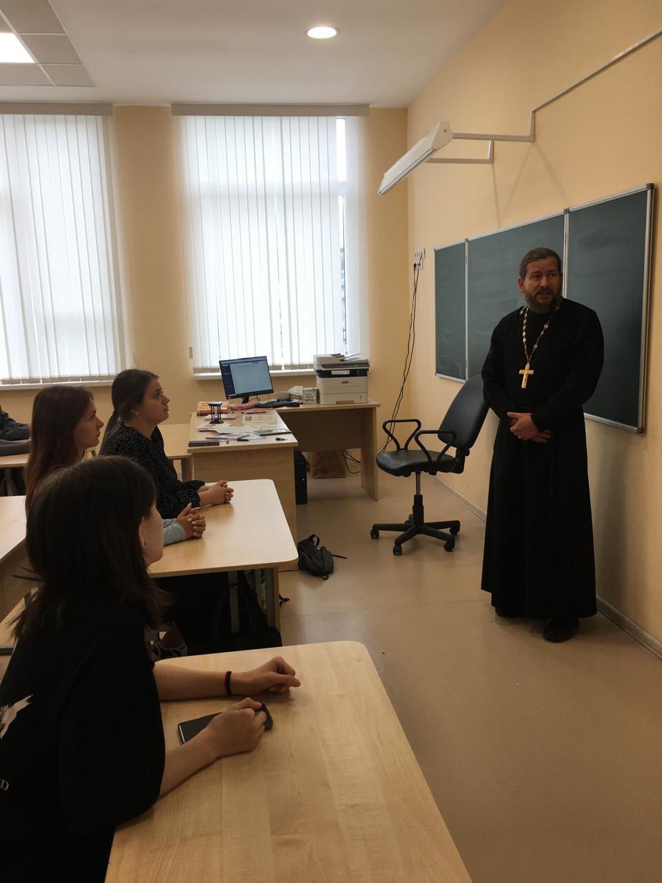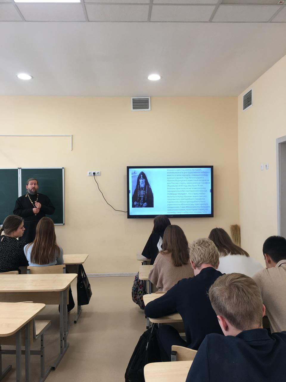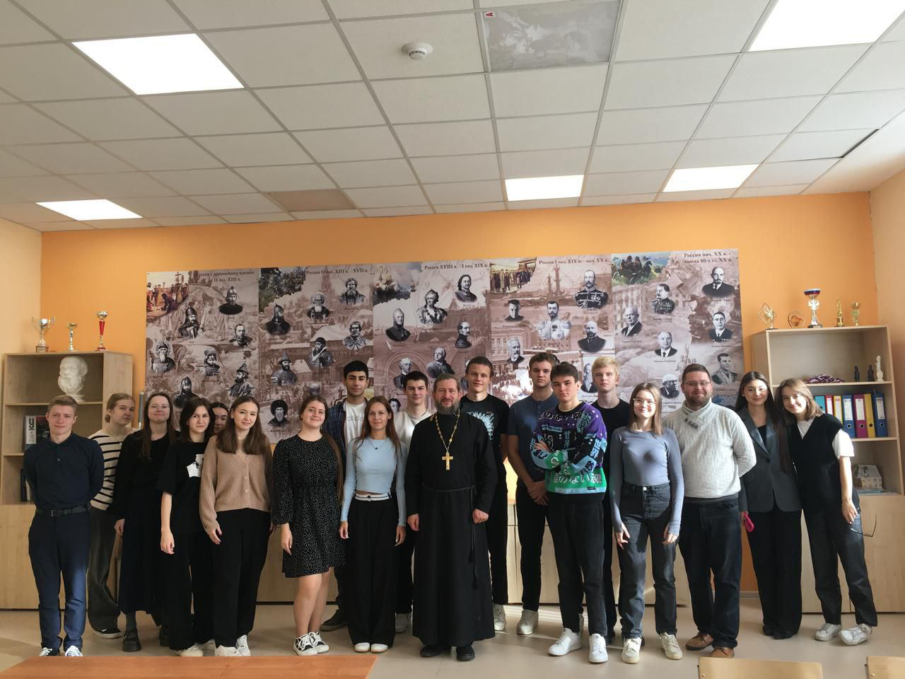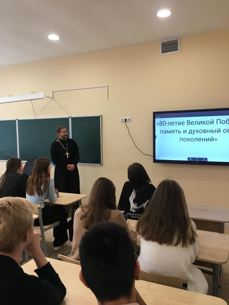 22 октября, в рамках XXII Московских областных Рождественских образовательных чтений «80-летие Великой Победы: память и духовный опыт поколений» в школе №11 города Щёлково в 11 классе прошёл открытый урок, который провёл настоятель храма святого страстотерпца царя Николая города Щёлково священник Максим Алифанов.