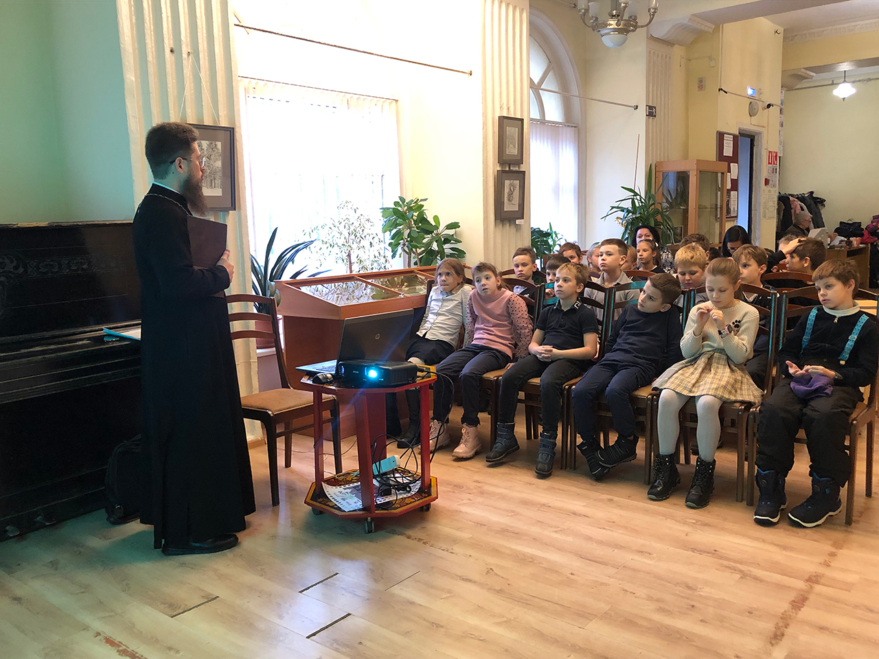 1 ноября, накануне Дня народного единства, в Культурном центре города Фрязино состоялась встреча настоятеля Державного храма наукограда священника Димитрия Третьякова с учащимися школы №1 города Фрязино.