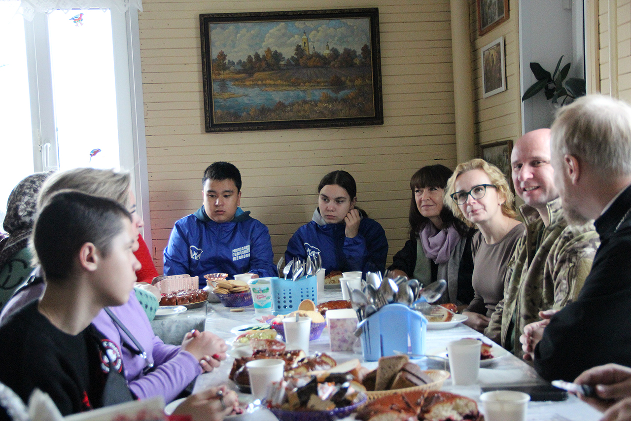Мероприятие началось Молебном о воинстве и Отечестве, а также Панихидой о павших бойцах СВО, которые совершили Председатель отдела по благотворительности и социальному служению Балашихинской епархии и настоятель Покровского храма города Щёлково протоиерей Алексий Никонов в сослужении с ответственным в Щёлковском благочинии по вопросам семьи, защиты материнства и детства и клириком Троицкого собора города Щёлково священником Димитрем Медведевым. После молебна отец Алексий провёл гостям экскурсию по храму, рассказав о его истории и местночтимых святынях.