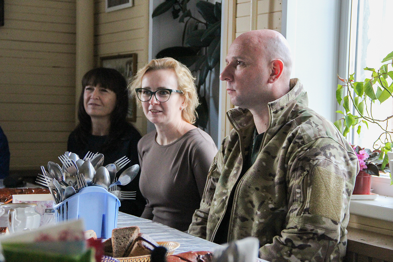 «Православная гостиная» традиционно продолжилась за чаепитием в трапезной Покровского храма, где собравшиеся могли по-семейному пообщаться, послушать духовные и патриотические песни.