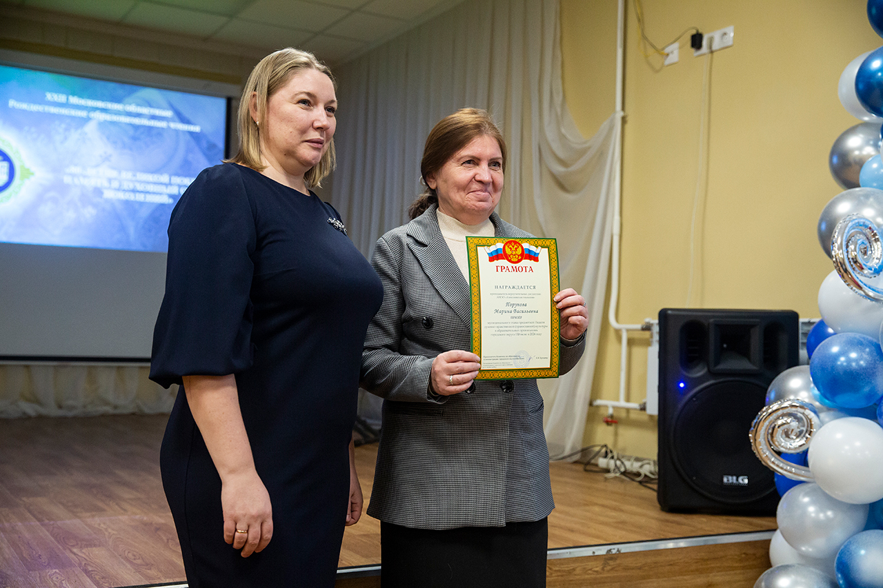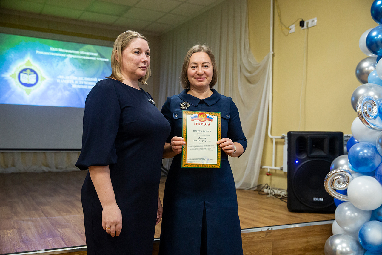 Благочинный Щёлковского церковного округа протоиерей Андрей Ковальчук и заместитель председателя Комитета по образованию Администрации городского округа Щёлково Виктория Александровна Файрушина наградили педагогов и обучающихся, принявших активное участие в мероприятиях в рамках Рождественских чтений, архиерейскими грамотами Балашихинской епархии, грамотами Щёлковского благочиния, грамотами Комитета по образованию Администрации городского округа Щёлково и памятными подарками.