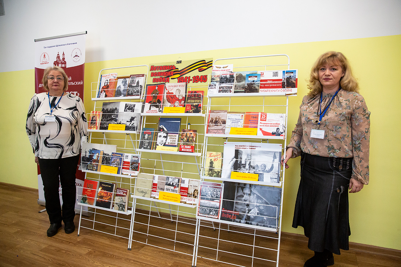 Сотрудники Православного духовно-просветительского центра «Благовест» при Библиотеке семейного чтения города Щёлково презентовали к этому событию книжную выставку «Летопись великих побед 1941 - 1945».