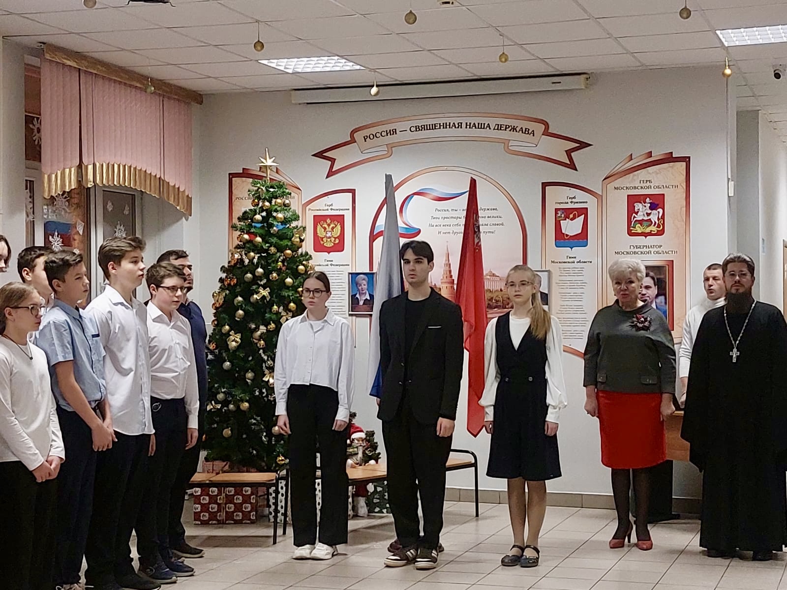 16 декабря настоятель Державного храма города Фрязино священник Димитрий Третьяков принял участие в торжественной линейке, церемонии поднятия флага и исполнения гимна Российской Федерации в школе №3 наукограда.