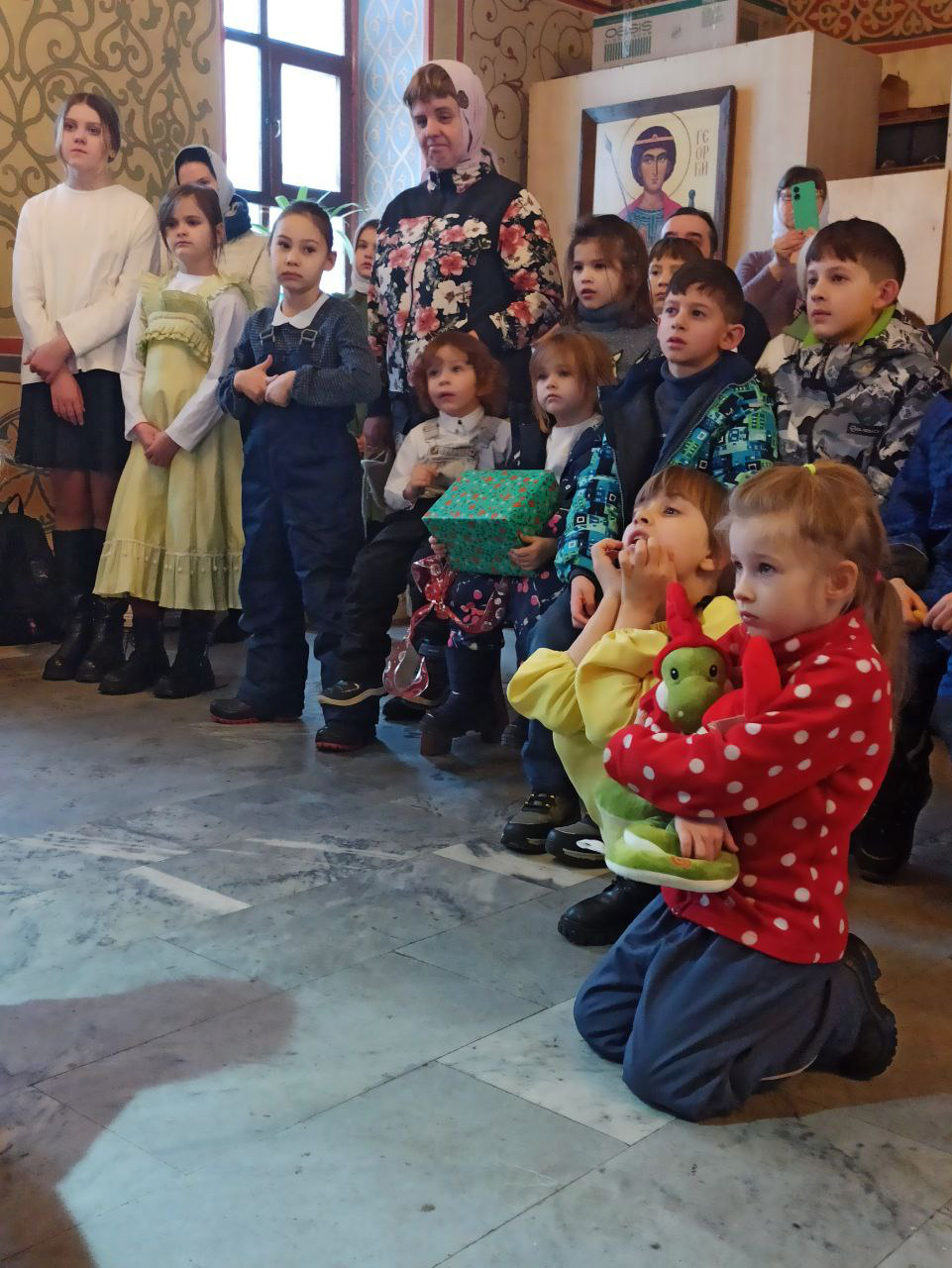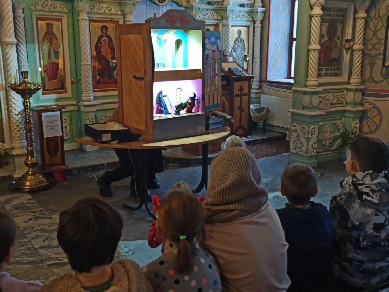 Лука, Ефросинья и Аглая Сенько показали кукольный Рождественский спектакль – Вертеп. А после спектакля народный коллектив ФЭА «Веретейка» (руководитель Н.Н. Ребячая) познакомил с рождественскими традициями и исполнил праздничные песни и колядки. Всем детям раздали вкусные подарки.