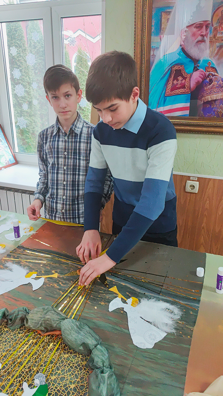 Мероприятию предшествовала большая подготовительная работа. Под руководством преподавателя изостудии Гришкиной Светланы Викторовны в притворе храма была организована выставка детских рисунков на сюжеты праздника. Ребята вместе с родителями приняли участие в мастер-классе по росписи рождественского печенья, который провела Ким Наталья Давидовна. Концертный зал был украшен новым занавесом и панорамным рождественским панно, в изготовлении которого потрудились все воспитанники школы вместе с преподавателем Давыдовой Евгенией Анатольевной. Силами воскресной школы у Троицкого собора в этом году вновь был установлен рождественский вертеп (автор – Демьянова Елизавета Евгеньевна).