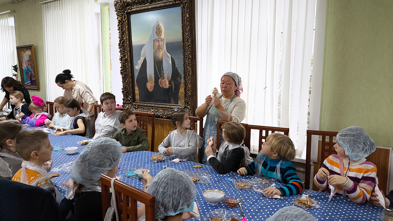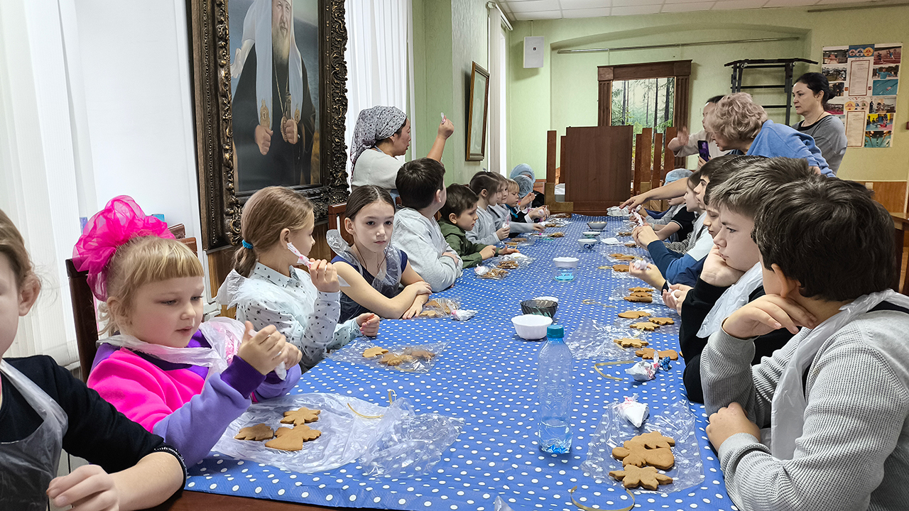Праздник традиционно начался участием всех воспитанников в Божественной литургии, на которой ребята из старшей группы пели в составе клиросного хора (регент – Анна Александровна Медведева). После службы состоялся концерт в конференц-зале.