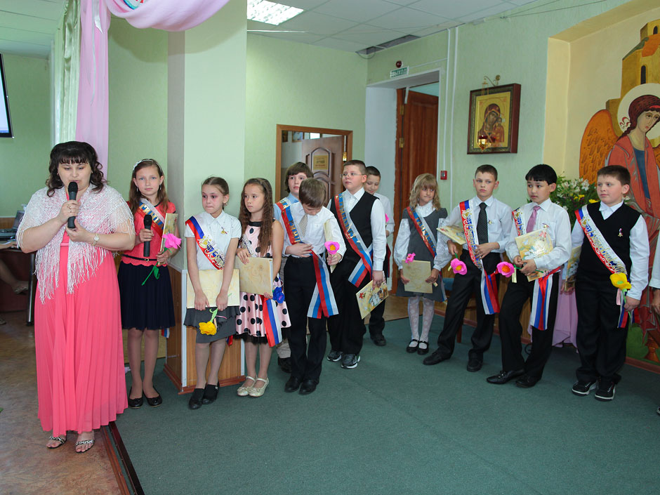 Торжественная часть началась с Литургии в Троицком соборе г. Щелково, которую возглавил протоиерей Андрей Ковальчук. После службы выпускники получили от батюшки благословение на предстоящую сдачу экзаменов и напутствие в жизни. В этом году четвертый выпуск девятого класса, который окончили четыре гимназиста и второй выпуск одиннадцатого класса, который закончили три гимназиста.