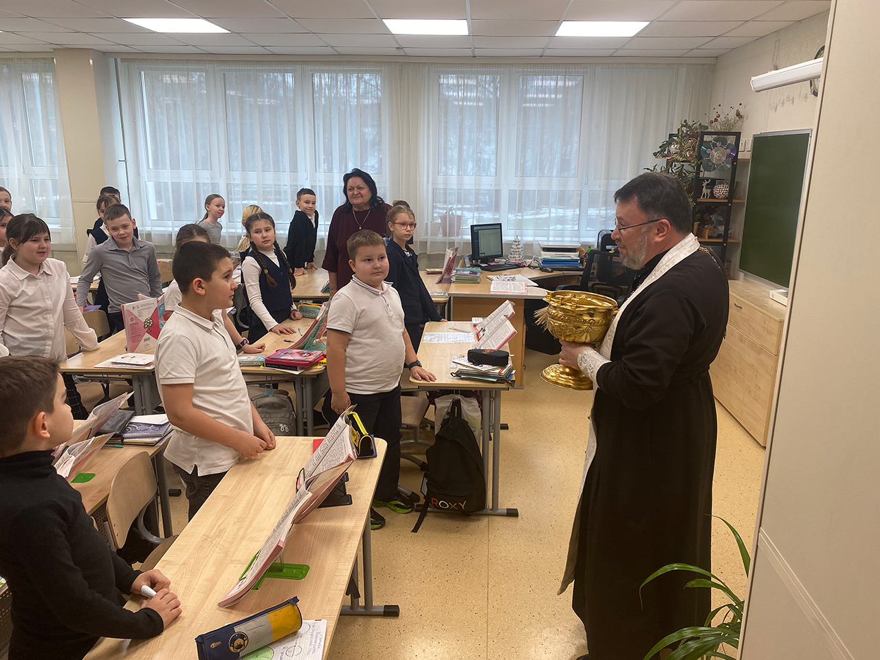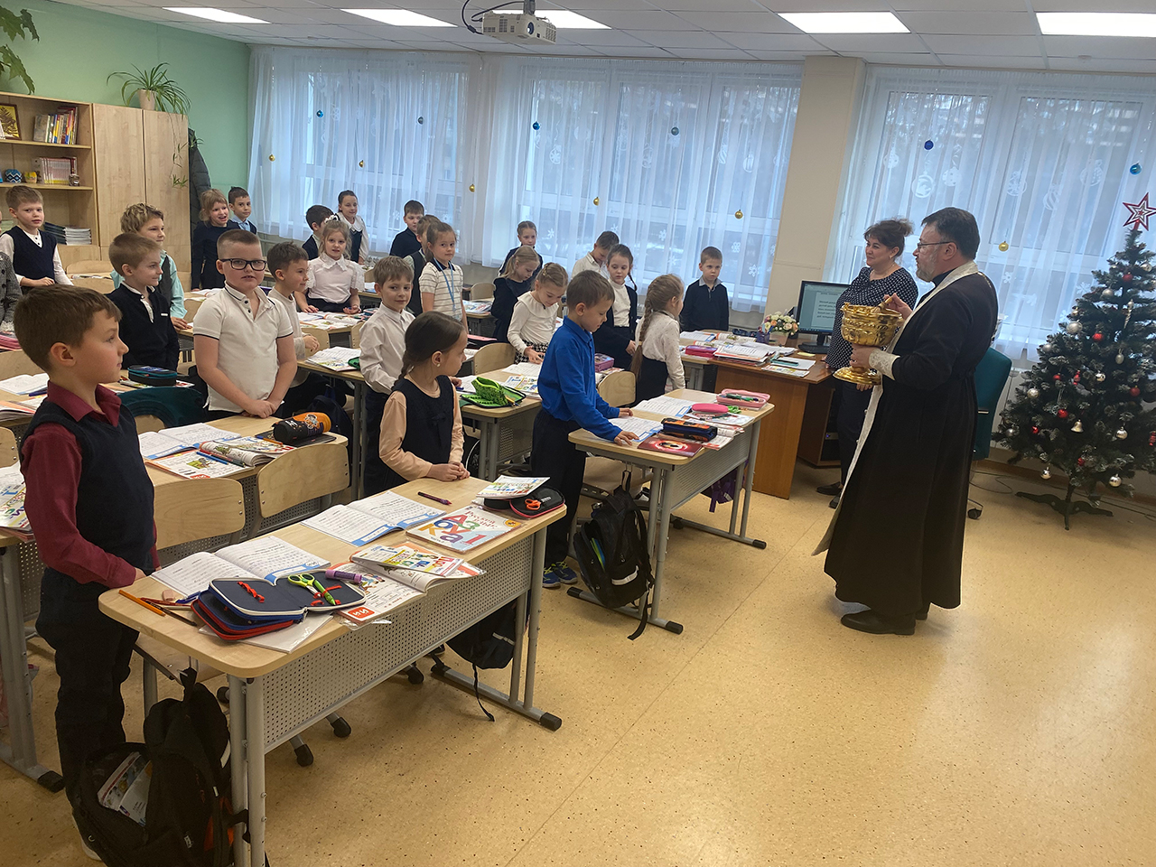 20 января настоятель Князь-Владимирского храма деревни Новофрязино священник Виктор Долгих вместе с клириком Державного храма города Фрязино священником Владимиром Тарасюком совершили молебен и освящение школы № 1 имени Героя Советского Союза И.И. Иванова города Фрязино.
