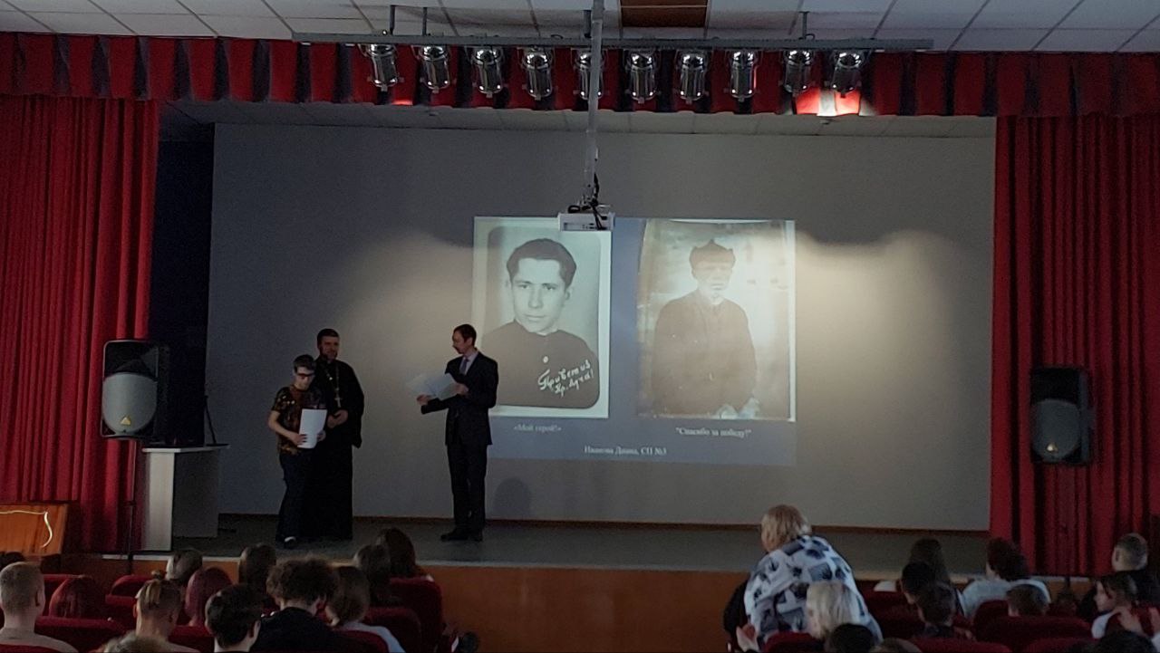 Отец Александр зачитал Послание Святейшего Патриарха Московского и всея Руси Кирилла по случаю празднования Дня православной молодежи и поздравил обучающихся.