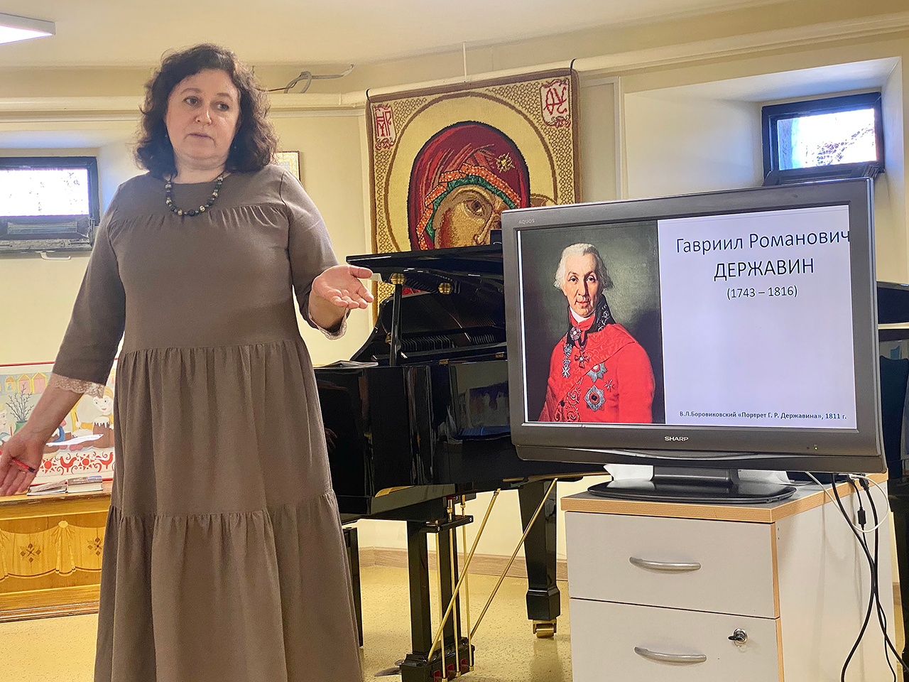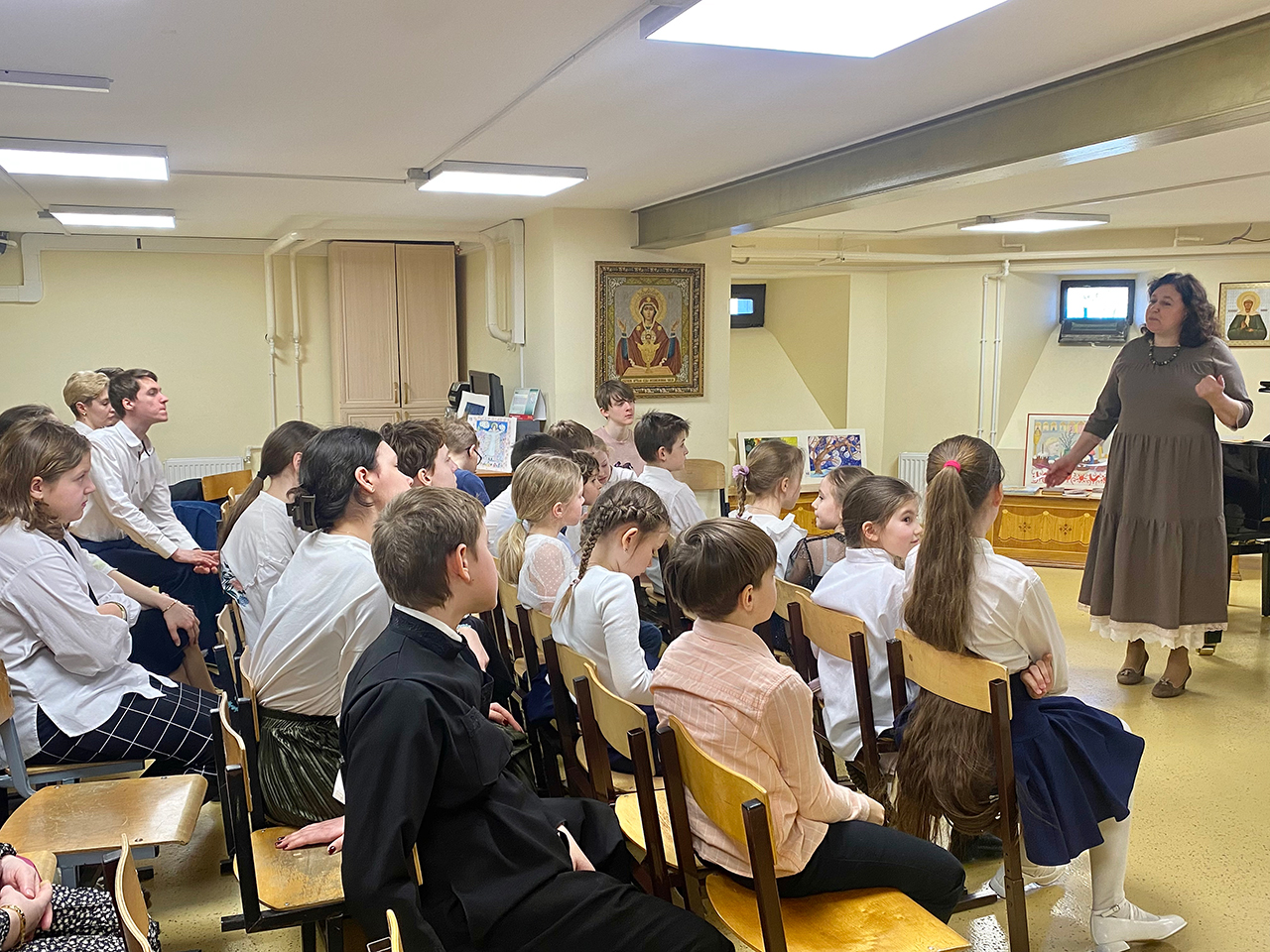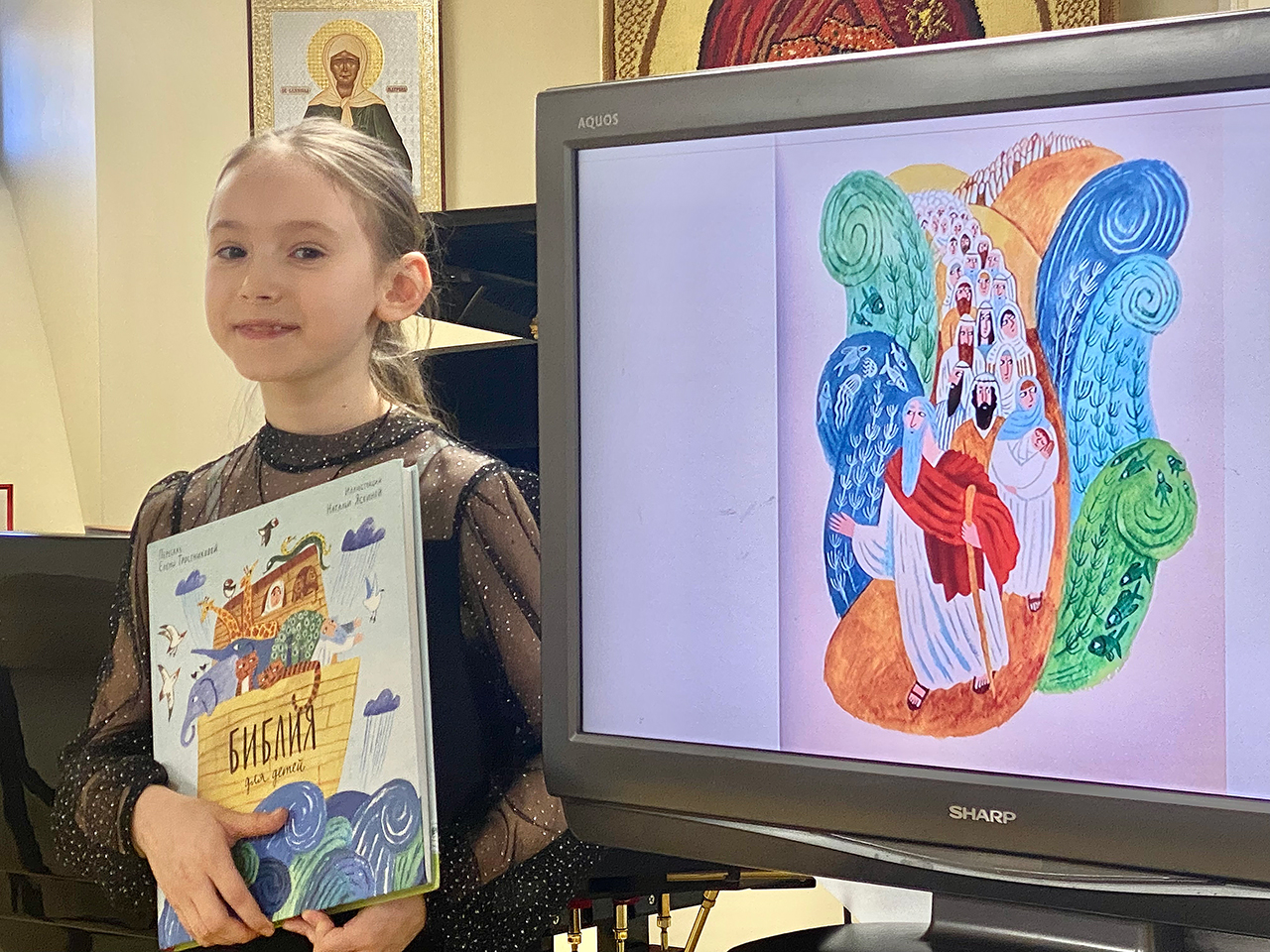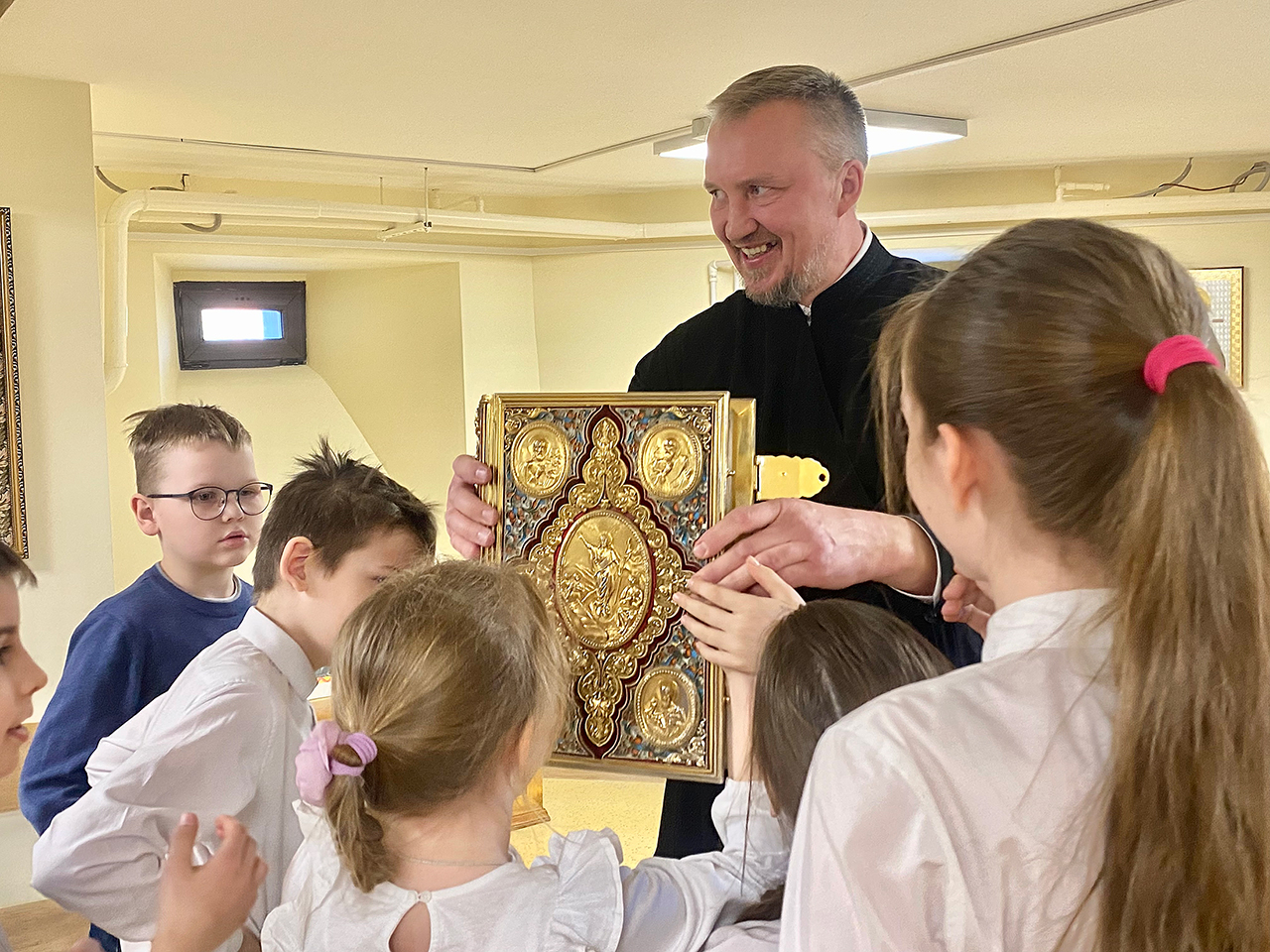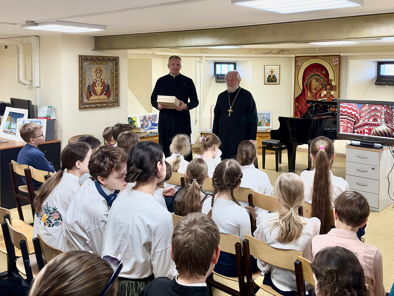 Первым выступил клирик Троицкого собора города Щёлково диакон Димитрий Задорожный, который рассказал детям о Священном Писании, показал издание, иллюстрированное красочными миниатюрами из лицевого свода Ивана Грозного, а также богослужебные Апостол и Евангелие.