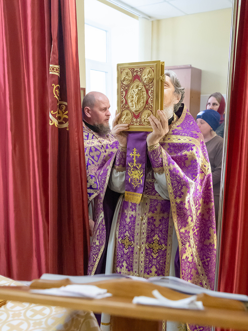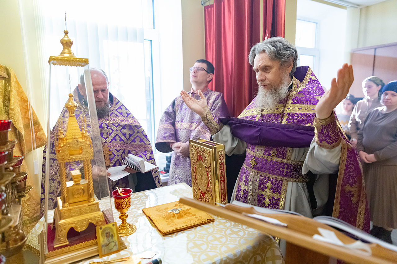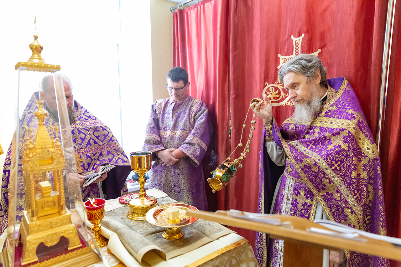 Божественную литургию совершил настоятель Покровского храма протоиерей Алексий Никонов в сослужении клирика храма священника Иоанна Сидоренко.