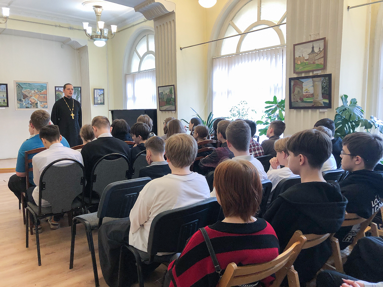 28 марта в Культурном центре города Фрязино состоялась беседа клирика Державного храма города Фрязино священника Владимира Тарасюка с семиклассниками Лицея Наукограда на тему «Священство как служение».