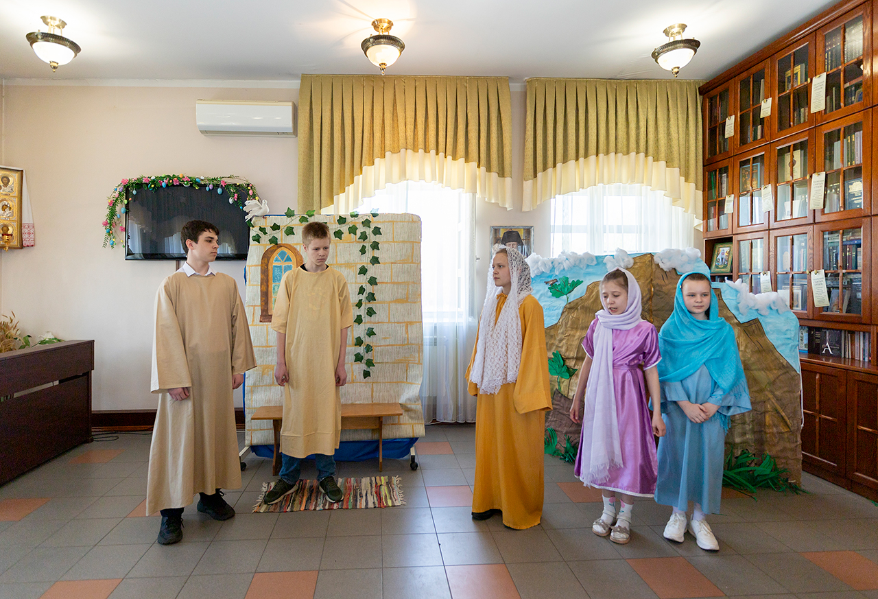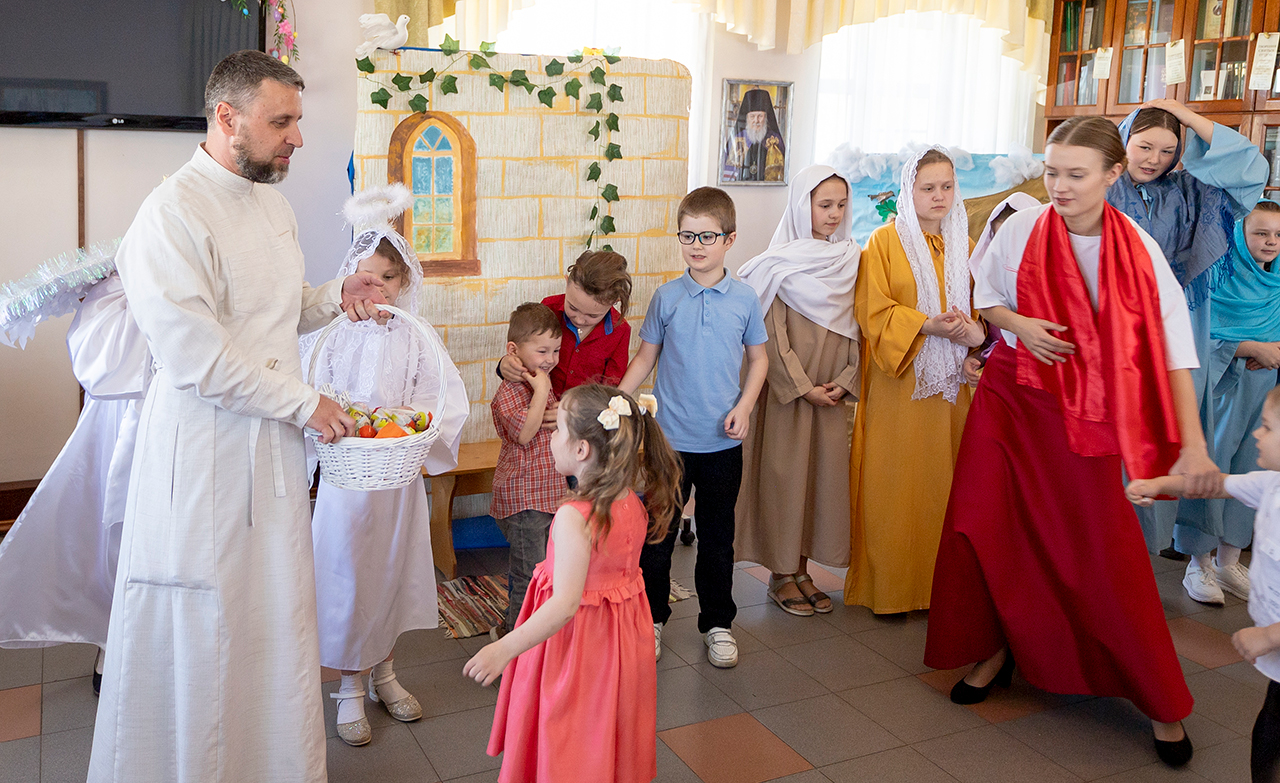 20 апреля в храме иконы Божией Матери «Спорительница хлебов» города Щёлково юные воспитанники воскресной школы подготовили праздничное театрализованное представление, посвящённое событиям Воскресения Христова.