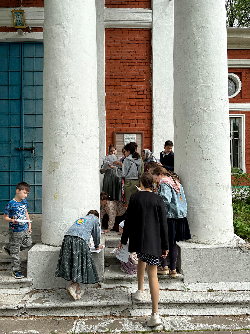 В начале квеста ребята получили индивидуальные листы с заданиями и вопросами. После этого, следуя указаниям в заданиях, им предстояло искать на территории храмов листочки с подсказками и разнообразный инвентарь, необходимый для выполнения заданий. Всё это преподаватели спрятали заранее. По итогу квеста ребята разгадали секретную фразу, которое должны были сообщить педагогам.