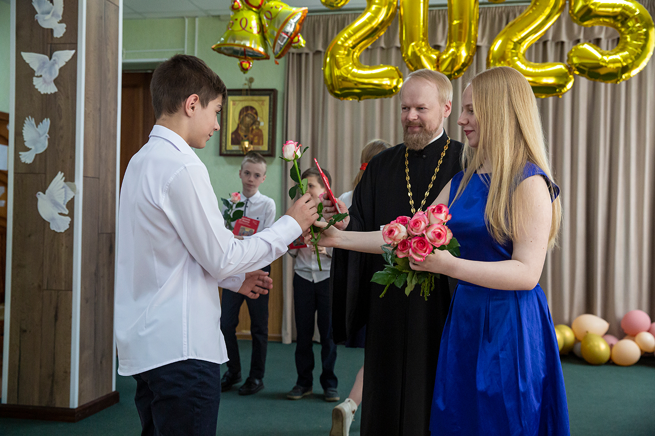 Выпускники были награждены грамотами благочиния за отличную учёбу, а родители воспитанников – за достойное воспитание детей и активное участие в жизни воскресной школы. После совместного чаепития в храме был отслужен благодарственный молебен по случаю окончания учёбы, после чего учащиеся по традиции возложили цветы к памятнику Царевича Алексия возле Троицкого собора.