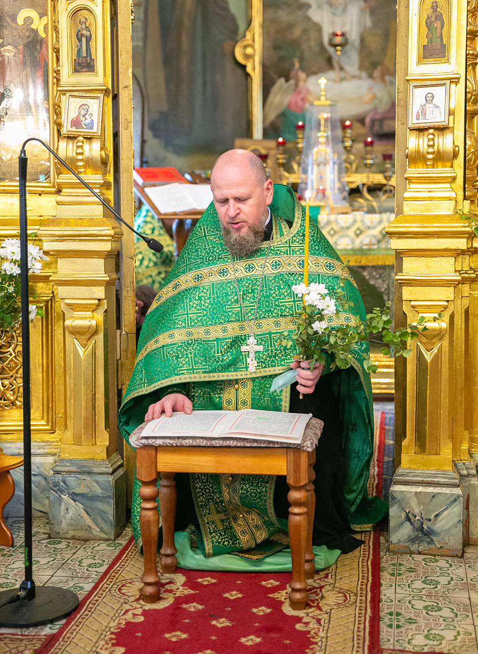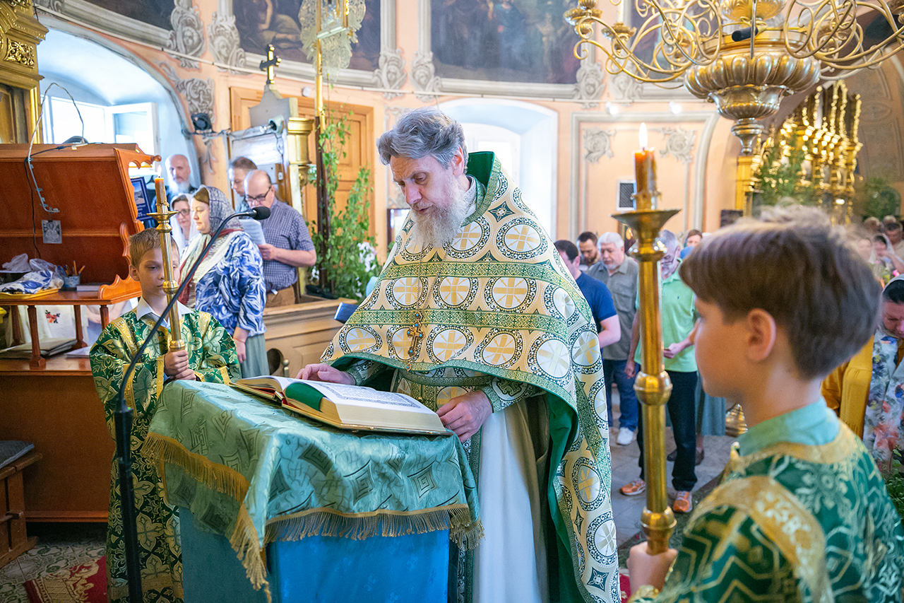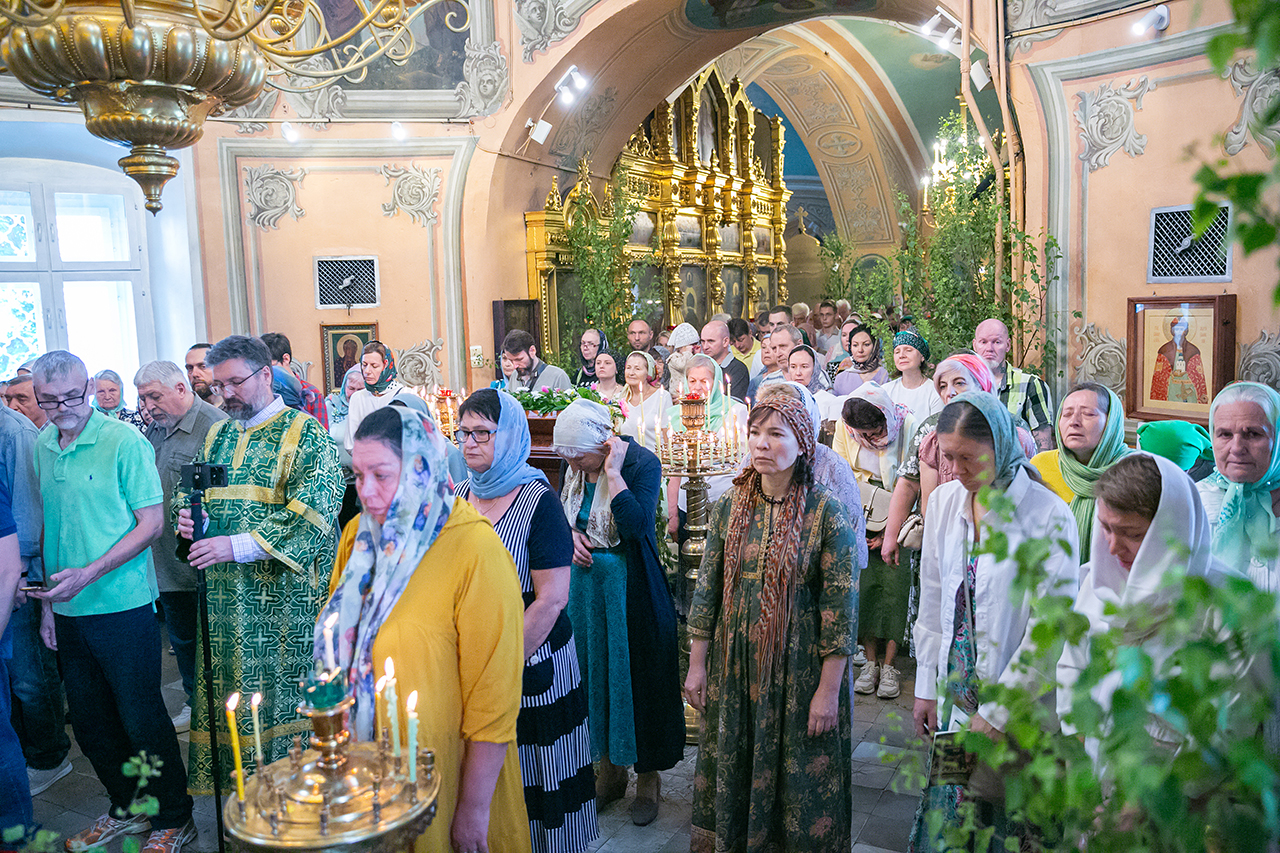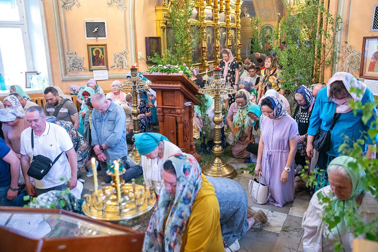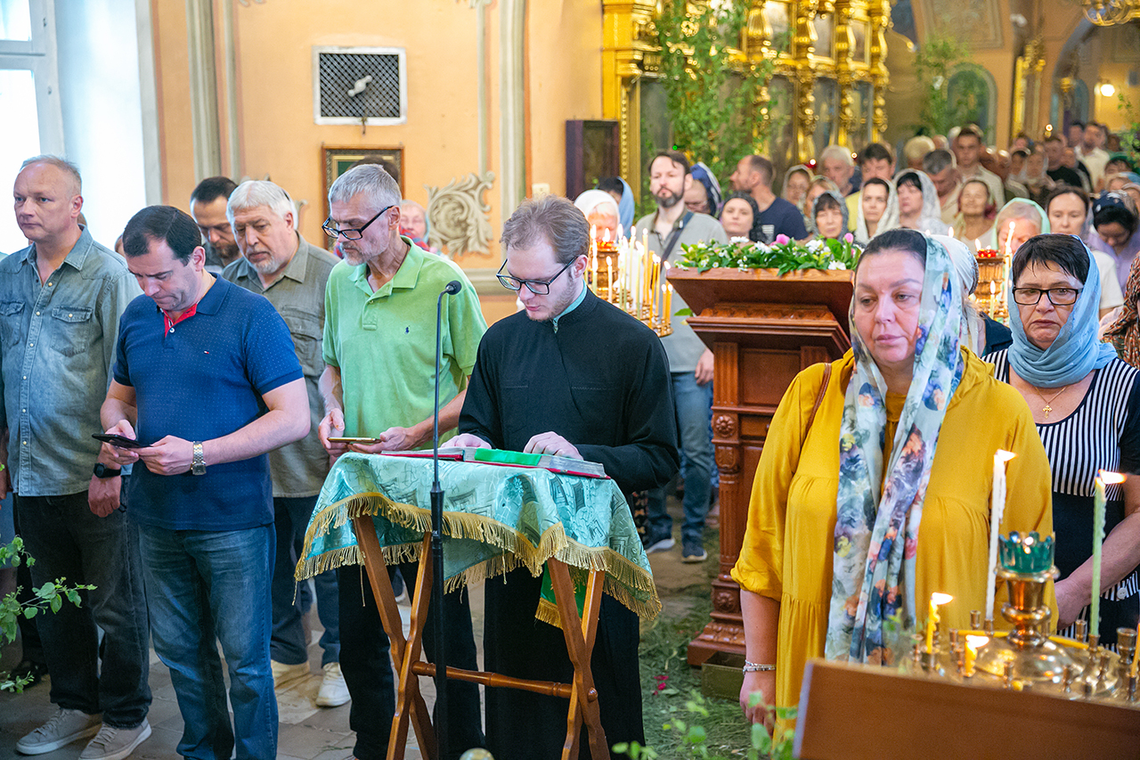Божественную литургию и великую вечерню с чтением коленопреклонных молитв в этот день совершил настоятель храма протоиерей Алексий Никонов в сослужении клириков храма. А накануне, 7 июня, в храме было совершено Всенощное бдение.