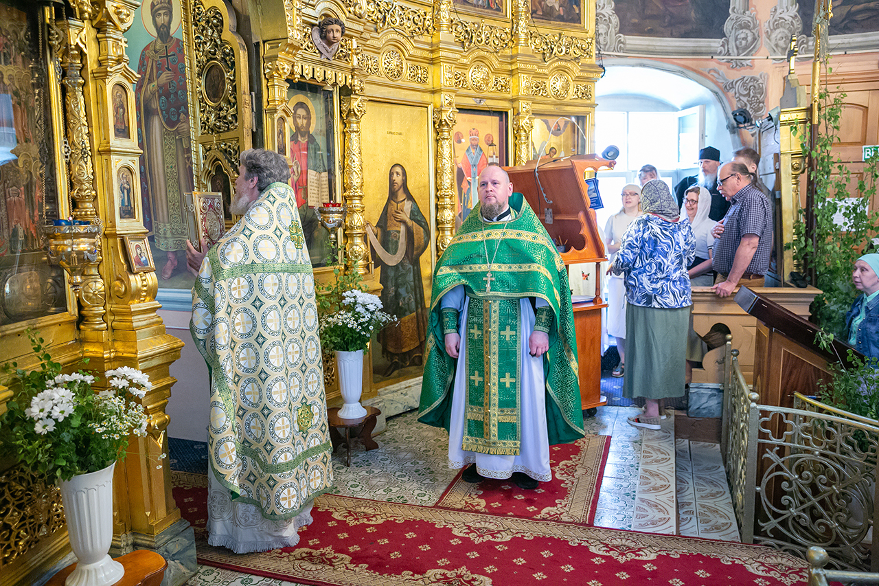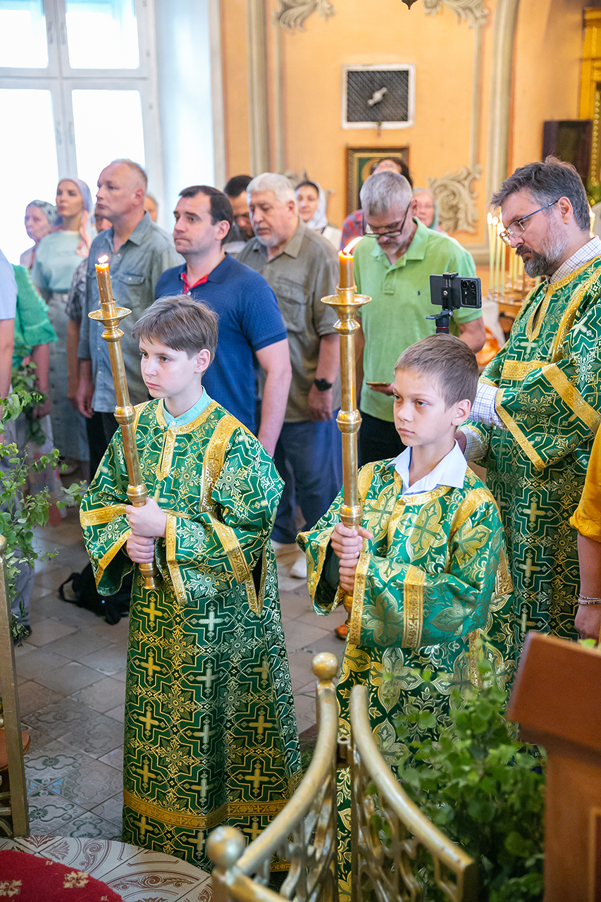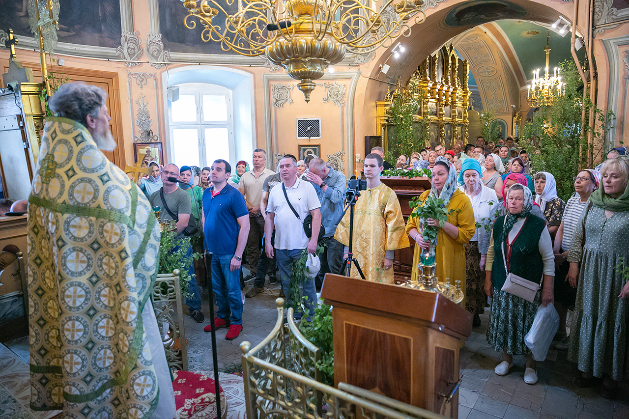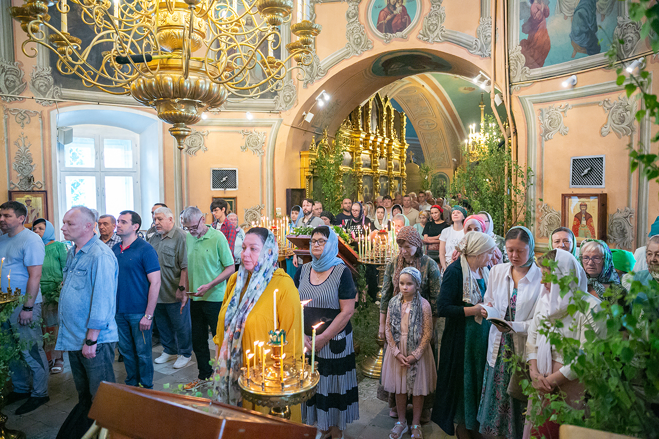 Божественную литургию и великую вечерню с чтением коленопреклонных молитв в этот день совершил настоятель храма протоиерей Алексий Никонов в сослужении клириков храма. А накануне, 7 июня, в храме было совершено Всенощное бдение.