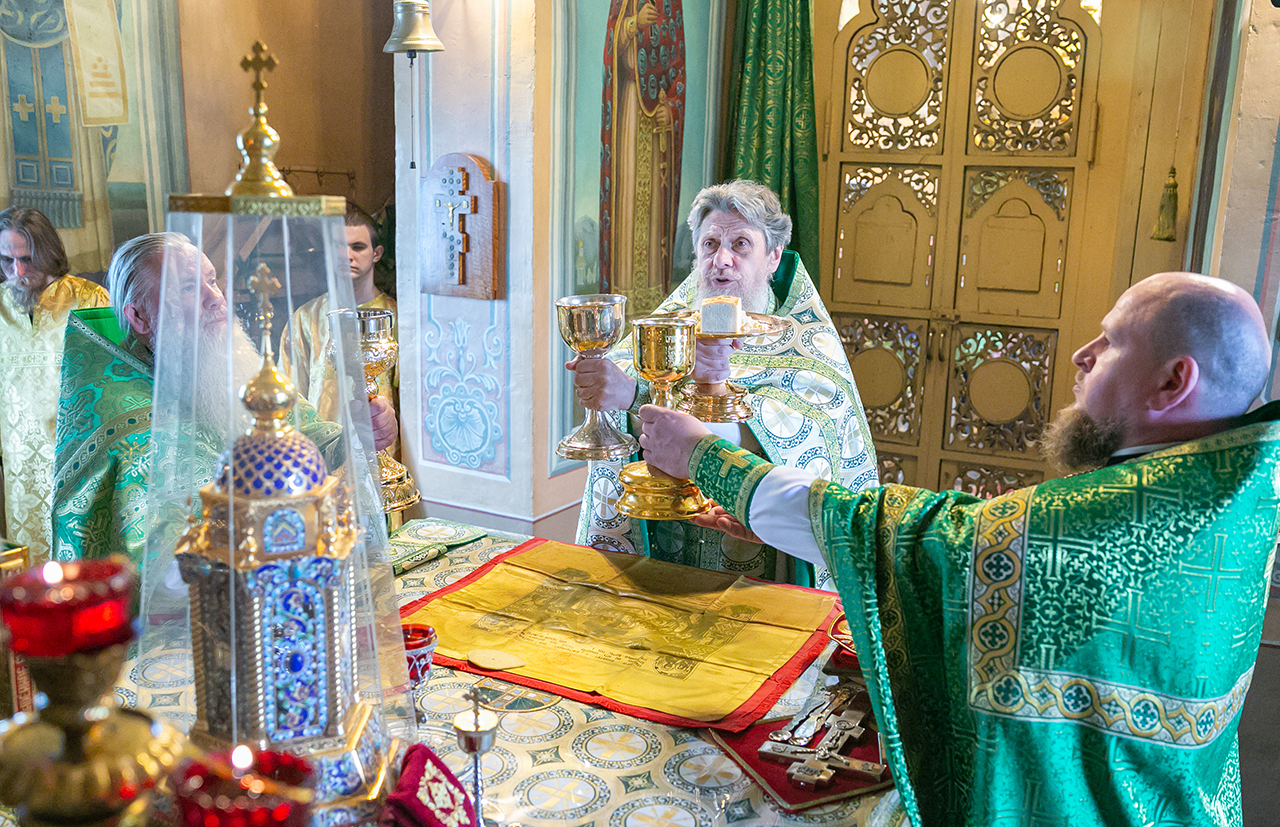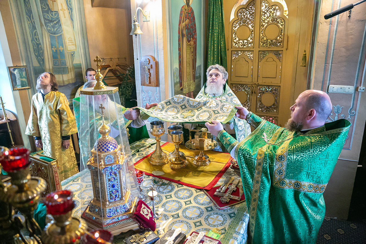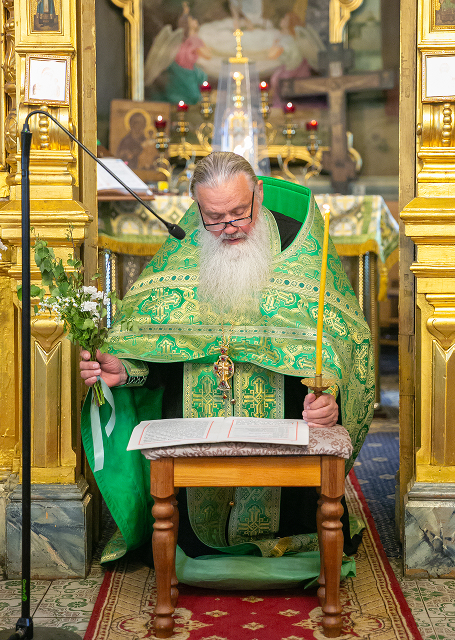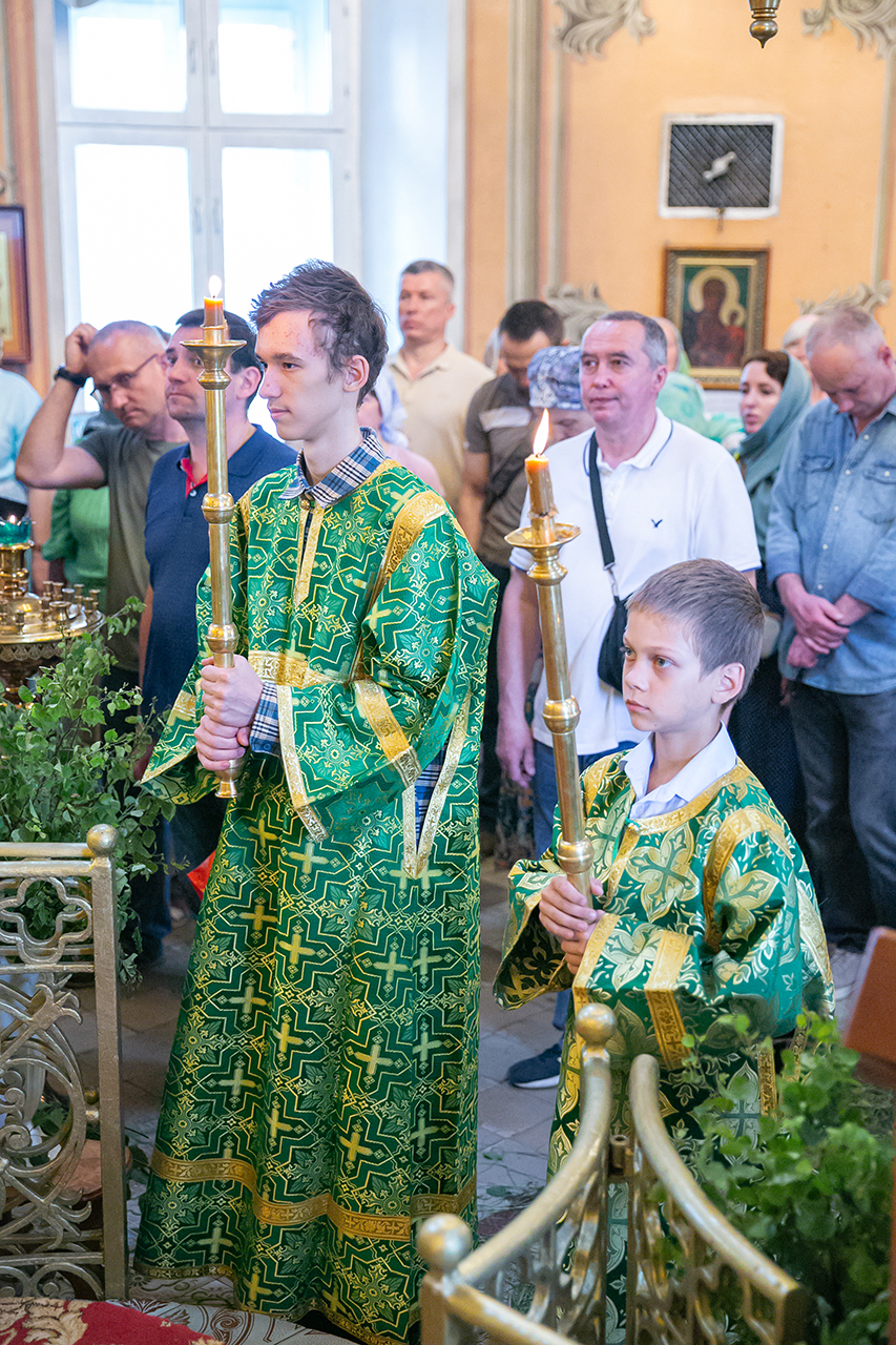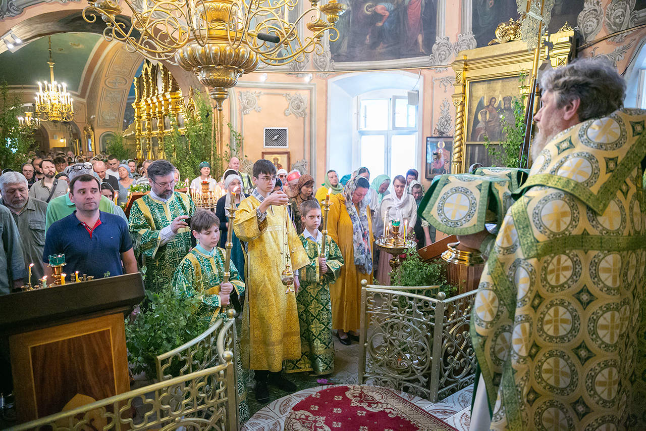 Божественную литургию и великую вечерню с чтением коленопреклонных молитв в этот день совершил настоятель храма протоиерей Алексий Никонов в сослужении клириков храма. А накануне, 7 июня, в храме было совершено Всенощное бдение.