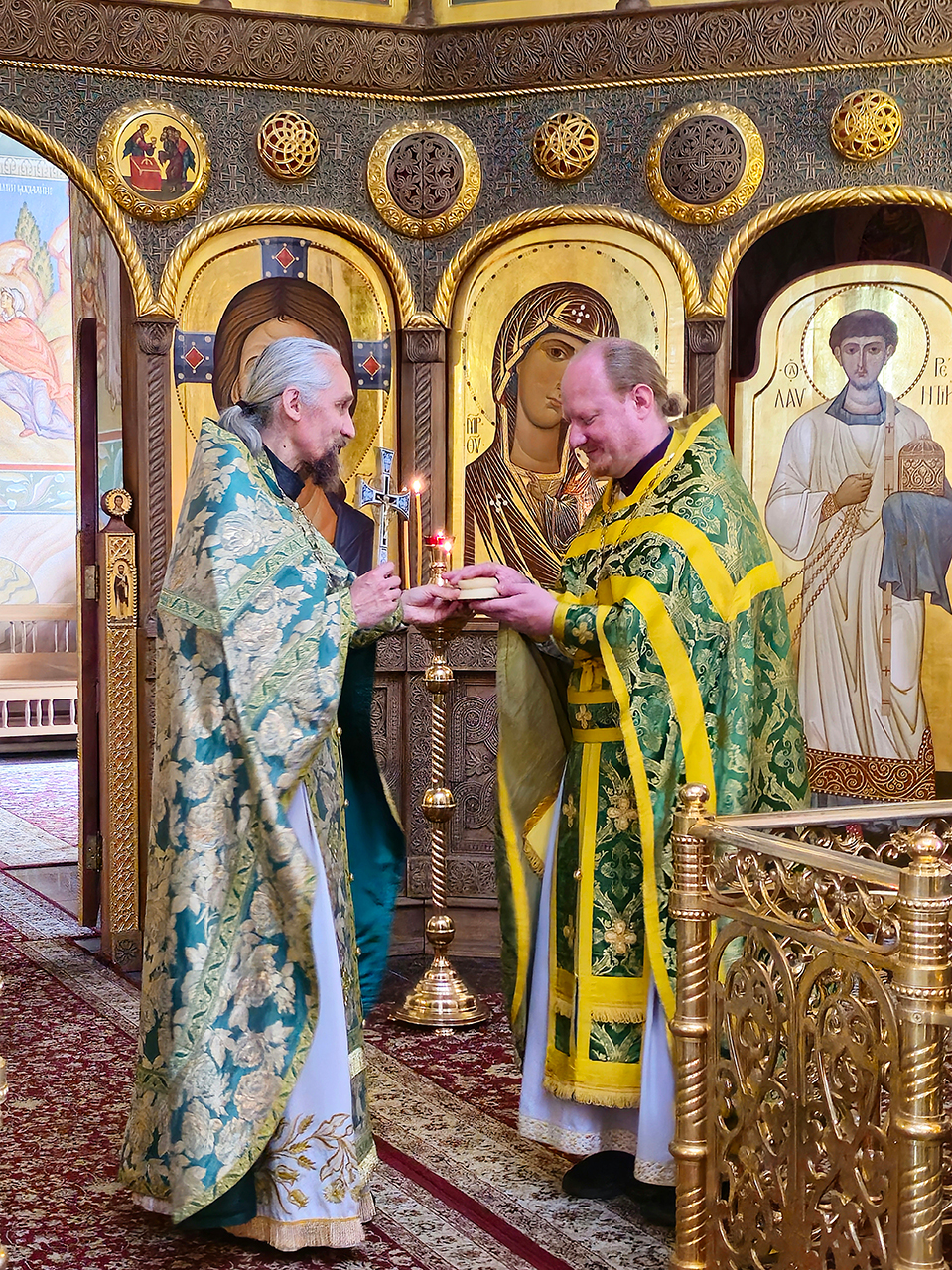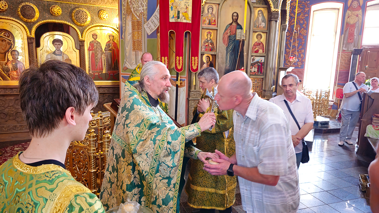 После Литургии и Праздничного Крестного хода, отец Илия обратился к батюшкм и прихожанам с приветственным словом, поблагодарил за совместную молитву.