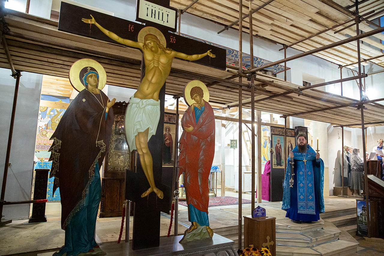 29 августа в Державном храме города Фрязино была совершена утреня с чином погребения Плащаницы Пресвятой Богородицы.