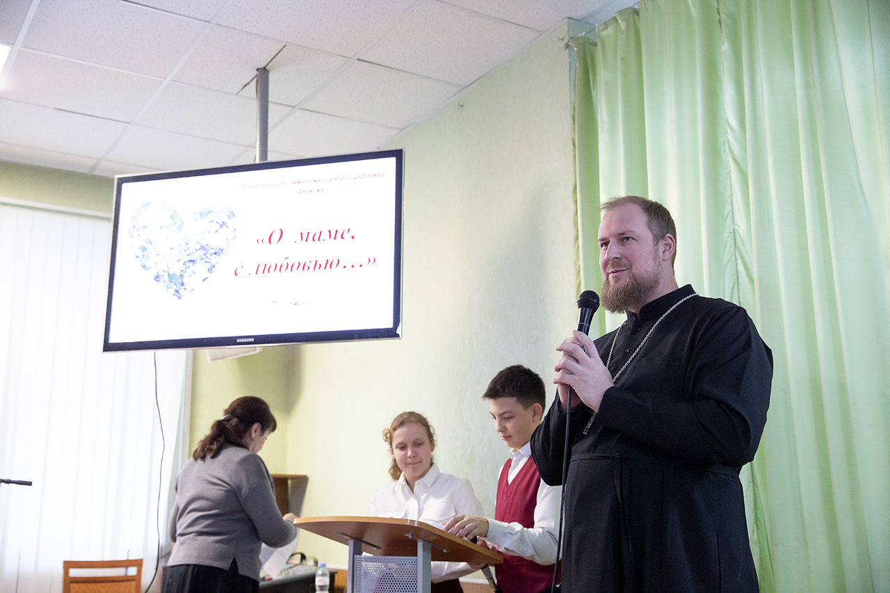 В актовом зале собрались учителя, педагоги и конечно же Мамы! Ребята порадовали собравшихся яркими танцами, трогательными песнями и добрыми стихами. Со словами поздравления ко всем мамам обратились директор гимназии Анна Викторовна Лыгина и духовник гимназии священник Павел Чекалин. Также в качестве примера семейной жизни на мероприятии был показан видео ролик о жизни семьи последнего русского императора Николая II.
