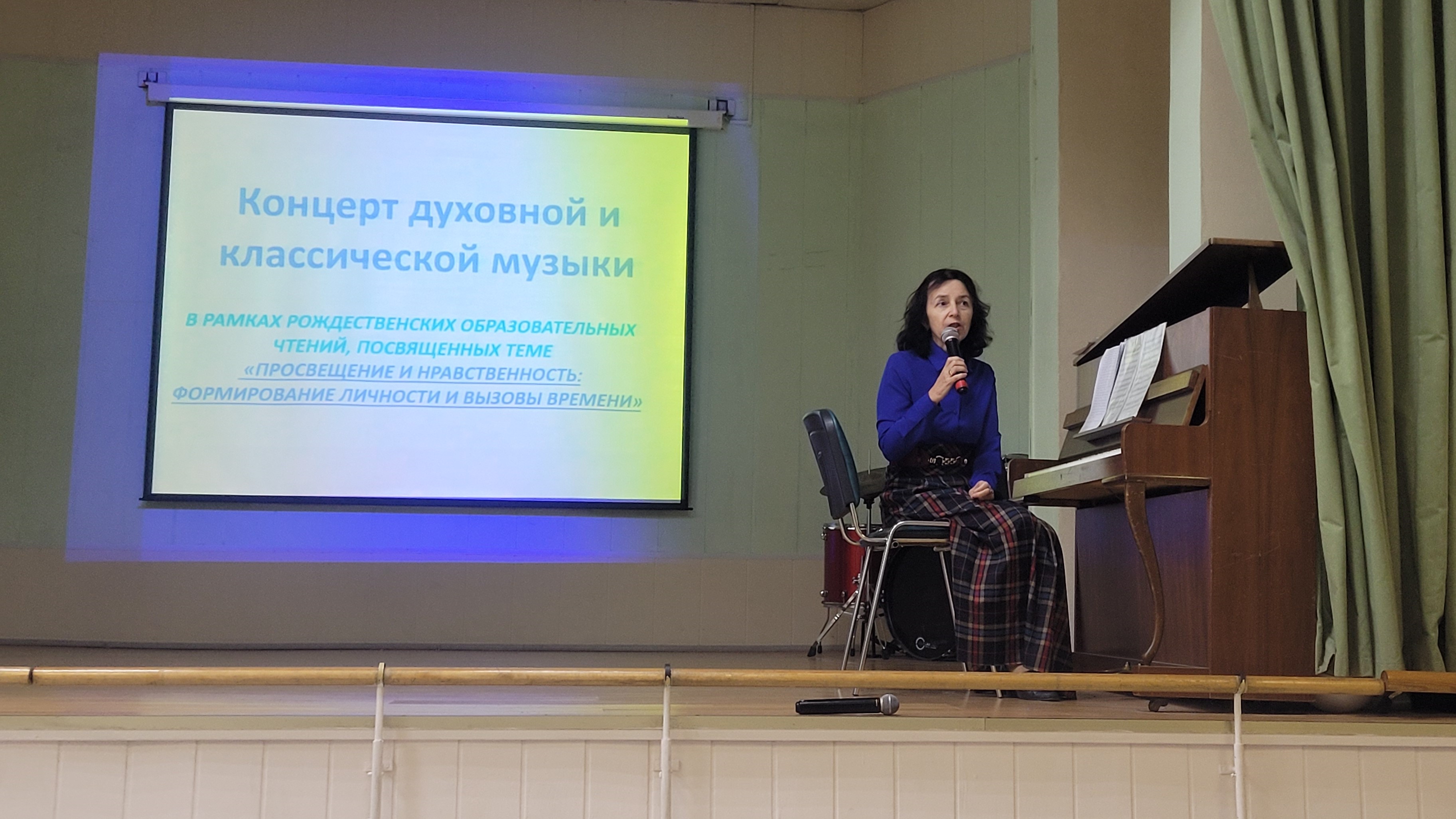 Мероприятие, организованное для старшеклассников преподавателем Татьяной Викторовной Земцовой, прошло в рамках Рождественских образовательных чтений. В исполнении Татьяны Викторовны на фортепиано прозвучали известные музыкальные шедевры Дж.Каччини, Ф.Листа, С.Рахманинова, Г.Свиридова.