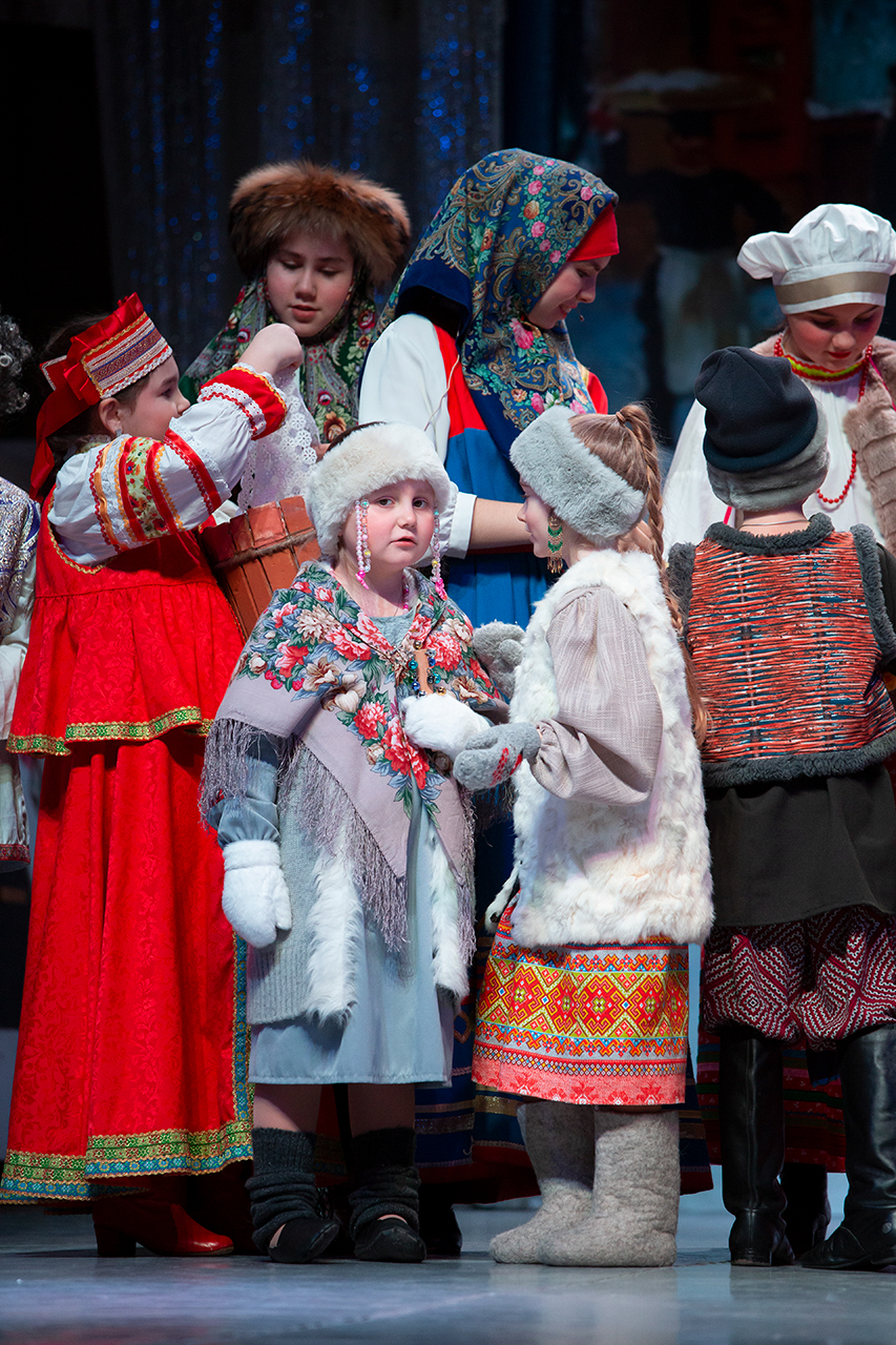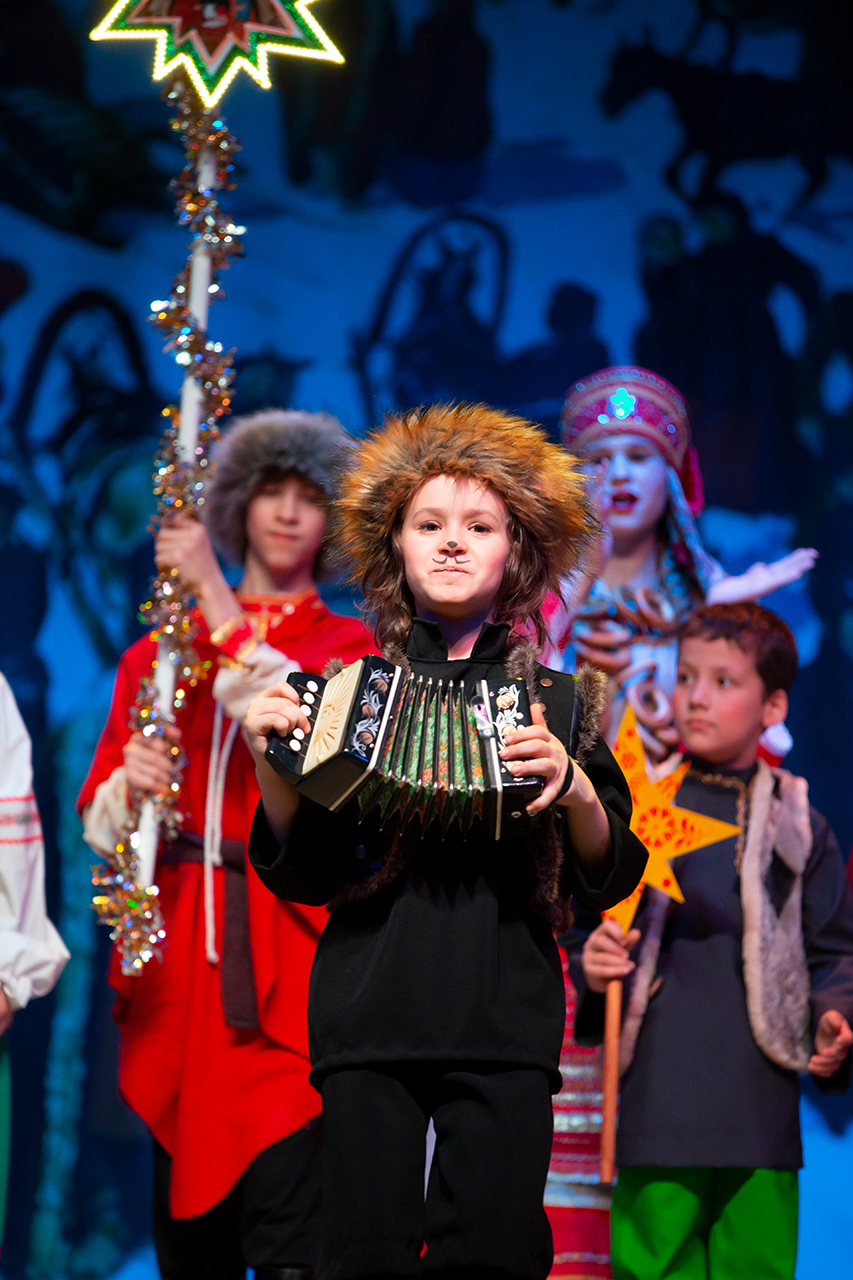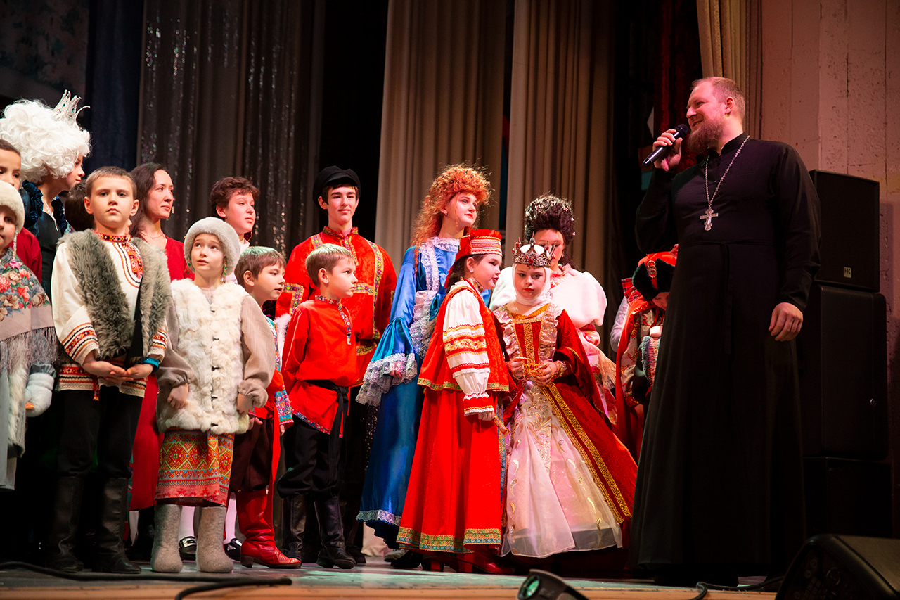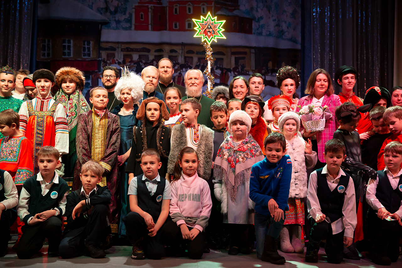 В спектакле участвовало 35 детей, большинство из которых воспитанники воскресных школ приходов блаженной Ксении Петербургской деревни Медвежьи Озёра и Преображения Господня в Звёздном городке.