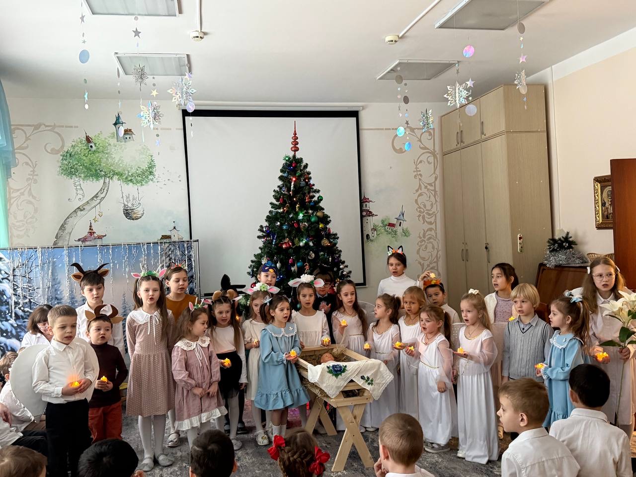 Воспитанники воскресной школы показали ребятам свои рождественские этюды и спели рождественскую колядку.