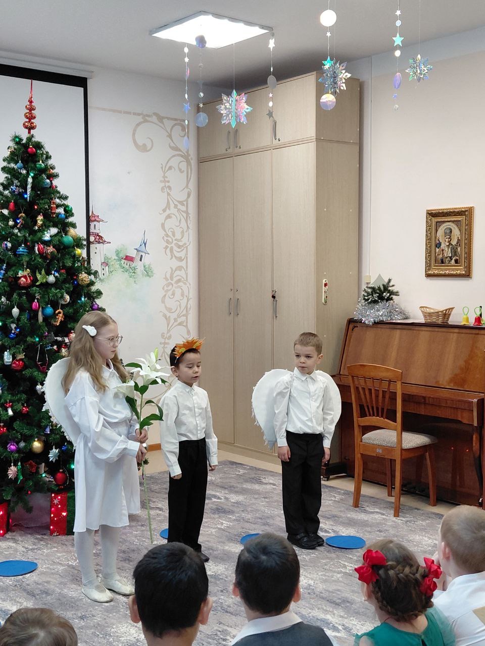 Настоящим сюрпризом стало выступление малышей из детского сада: они с трогательной искренностью читали рождественские стихотворения.