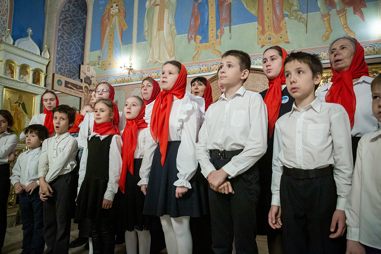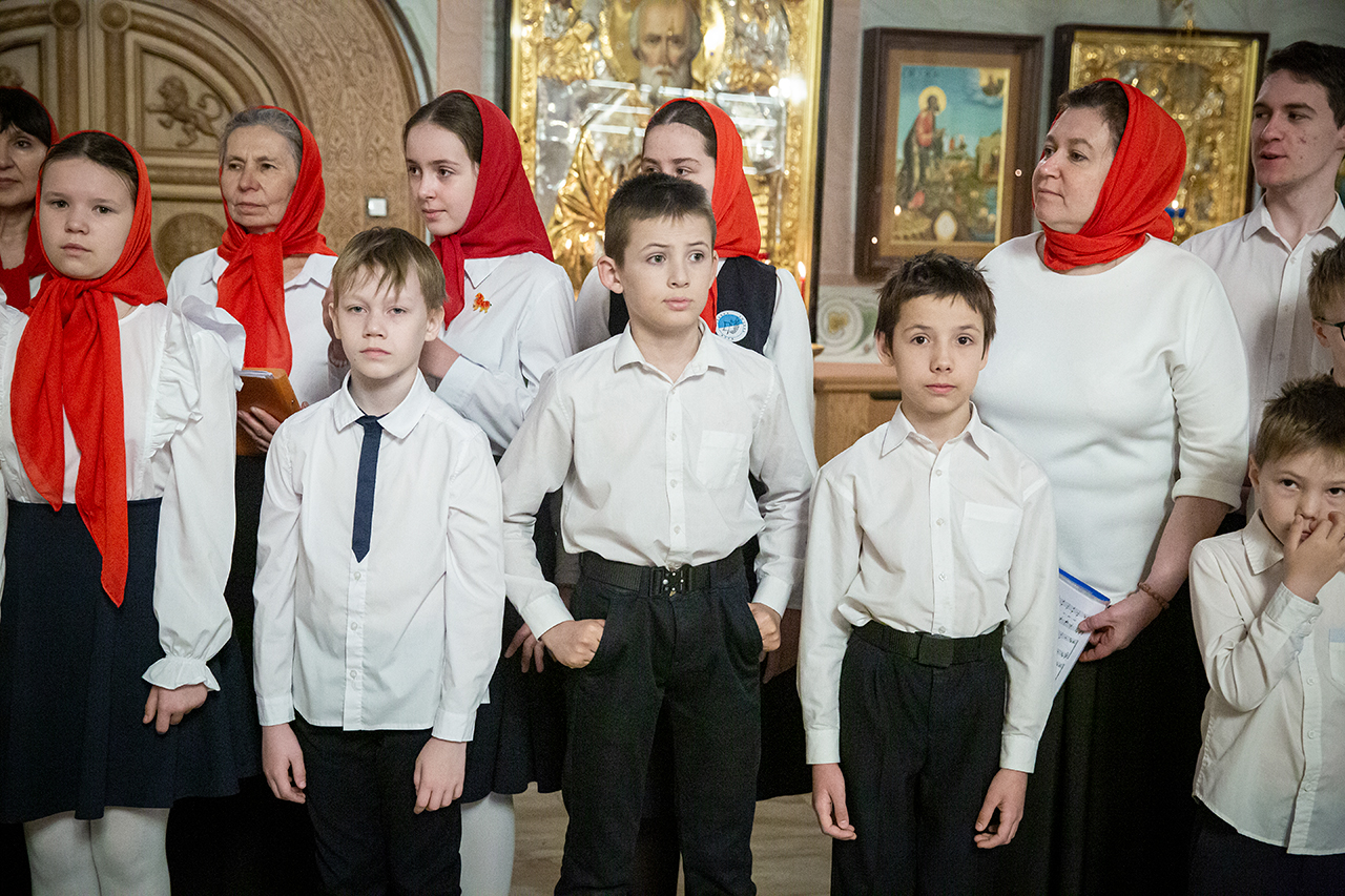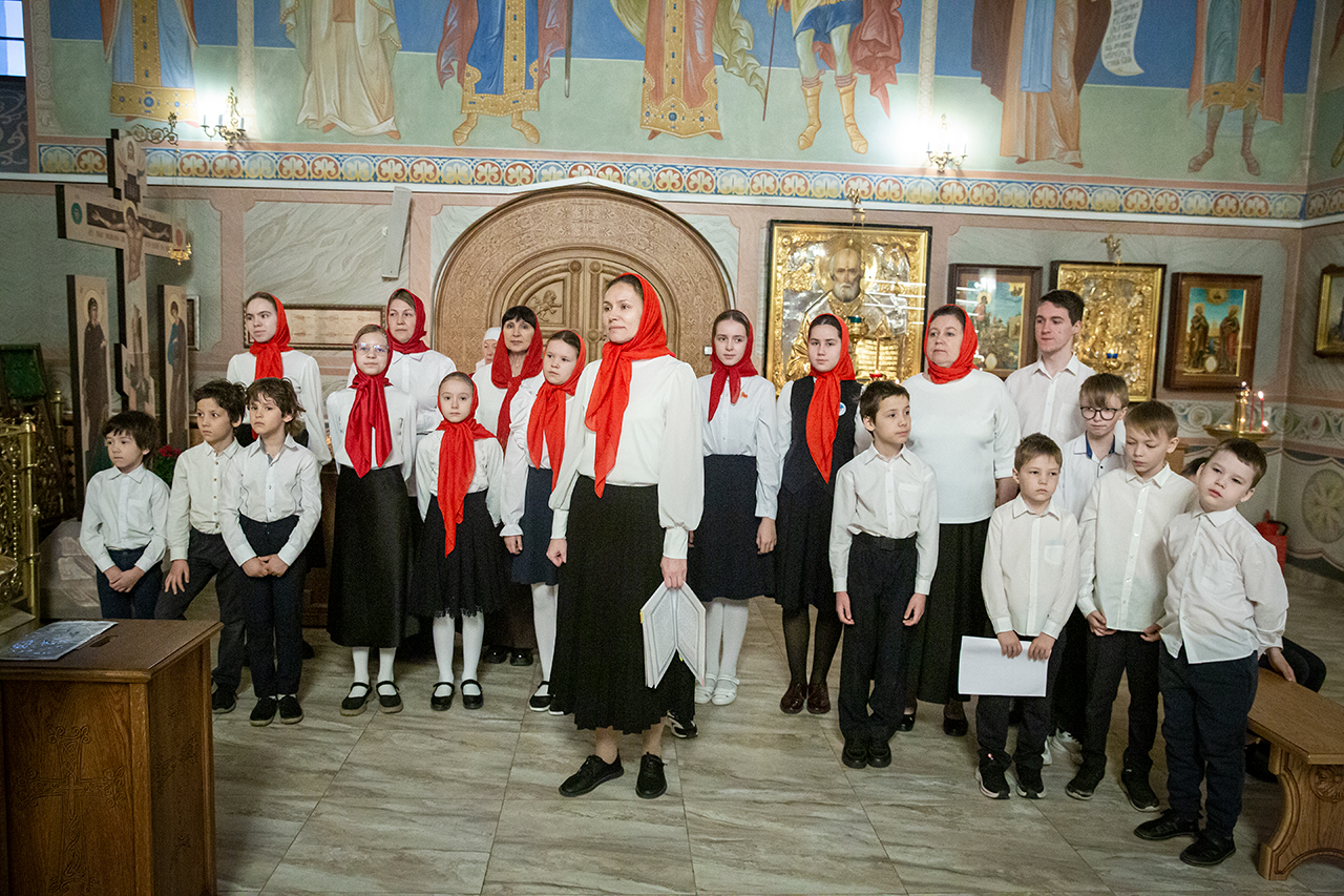 За богослужением пели клиросный хор под управлением Татьяны Валерьевны Савченко и хор приходской воскресной школы под управлением Яны Станиславовны Немцевой.
