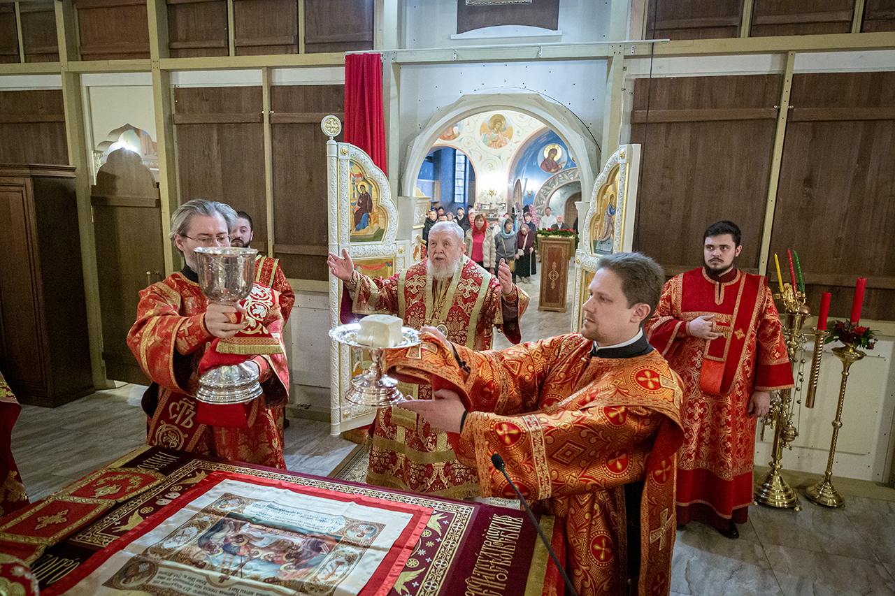 15 апреля, в среду Светлой седмицы, епископ Балашихинский и Орехово-Зуевский Николай совершил Божественную литургию в храме блаженной Ксении Петербургской деревни Медвежьи Озера.