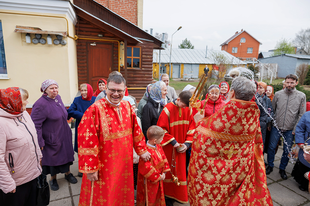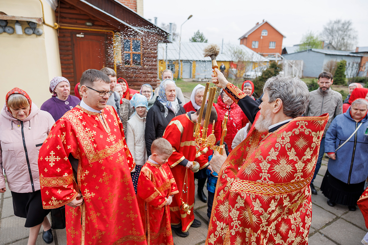 17 апреля, в пятницу Светлой седмицы, праздник иконы Божией Матери «Живоносный Источник», в Покровском храме города Щёлково настоятель храма протоиерей Алексий Никонов и клирик храма священник Иоанн Сидоренко совершили Божественную литургию, водосвятный молебен и крестный ход вокруг храма.