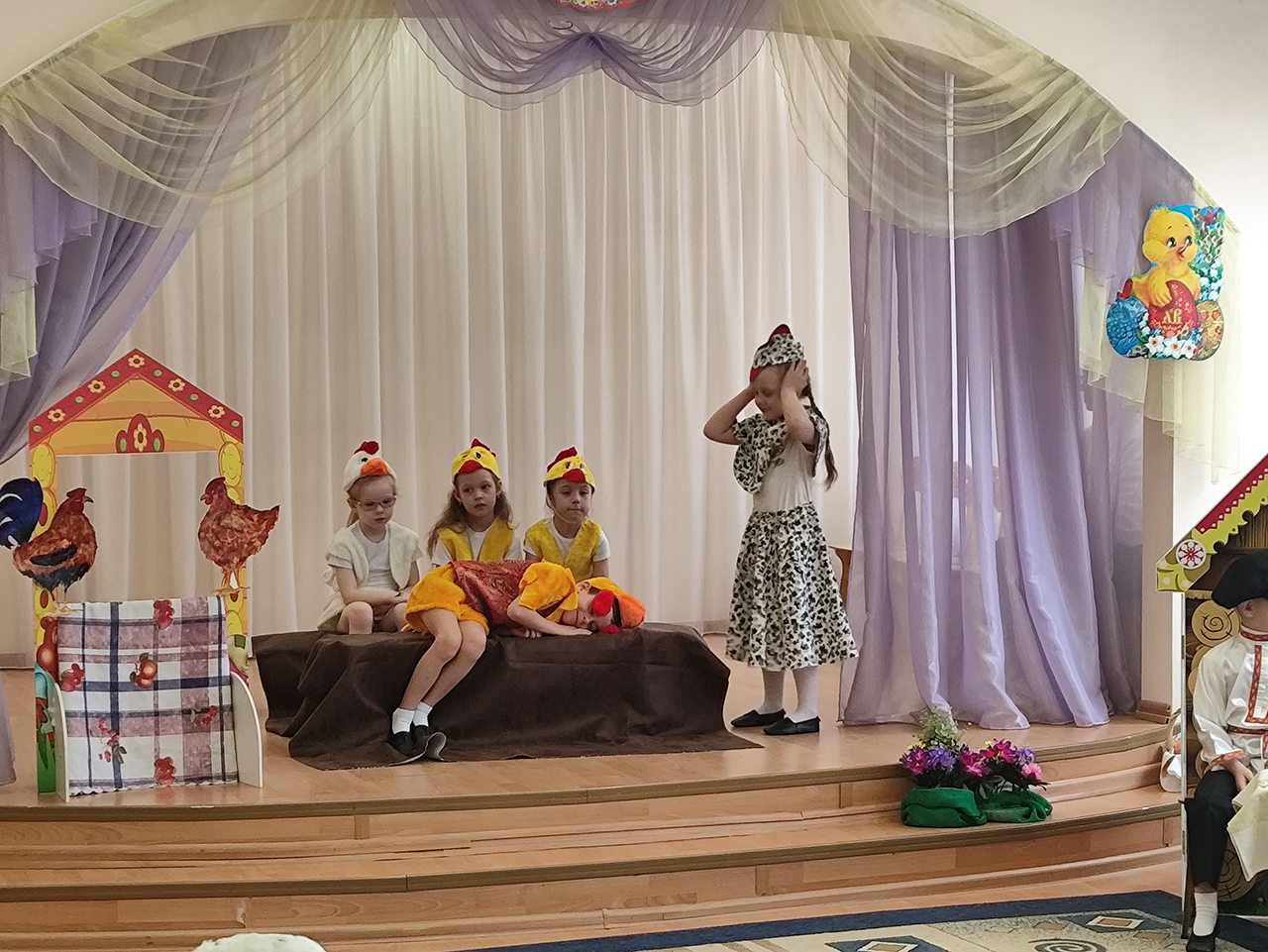 20 апреля в детском саду №18 «Росинка» города Щёлково прошло радостное пасхальное мероприятие. Воспитанники разновозрастной группы «Журавлик» показали для гостей и сверстников пасхальную сказку «Петушок и бобовое зёрнышко».