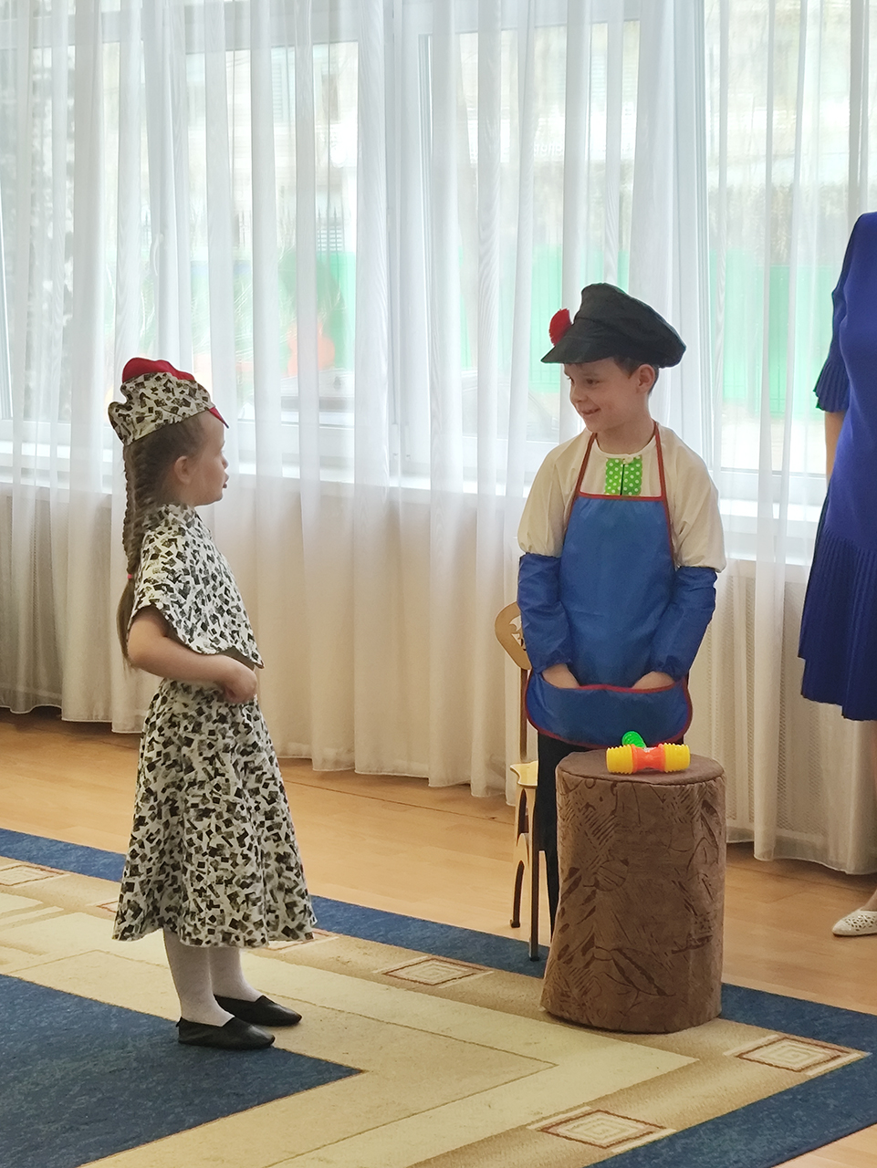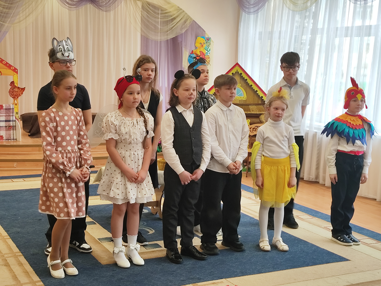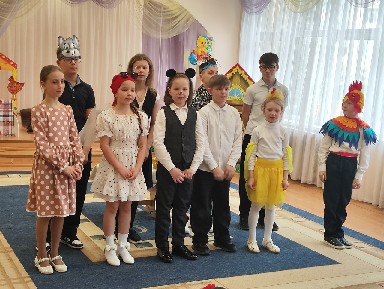 Также с ответным визитом выступили обучающиеся воскресной школы Серафимовского храма города Щёлково, которые подарили юным зрителям постановку «Муха-цокотуха».