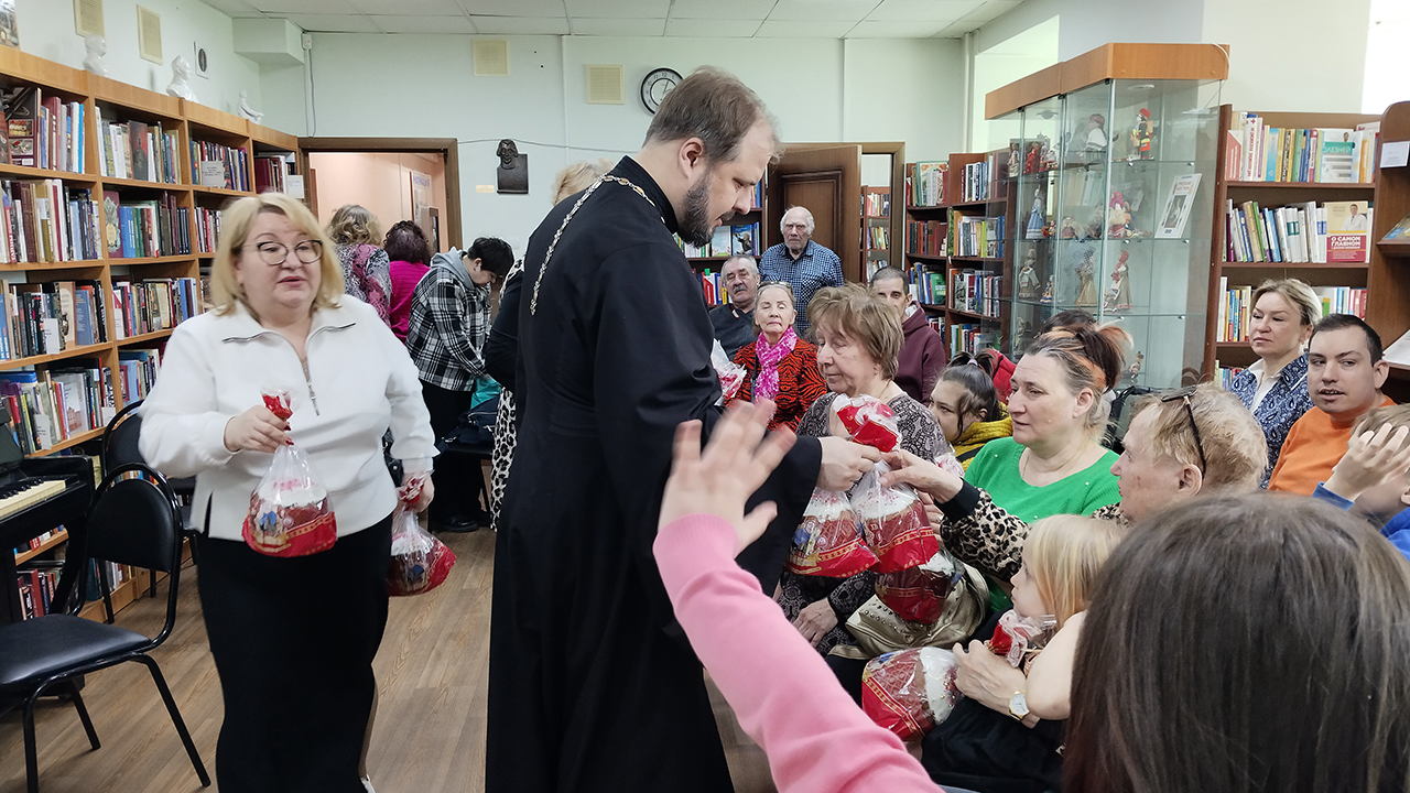 Поздравить гостей со Светлой Пасхой пришёл духовник центра «Благовест» священник Евгений Трушин. Батюшка рассказал о значении этого великого дня для всех православных христиан, пожелал мира и добра. А затем передал семьям сладкие пасхальные куличи от Щёлковского благочиния.