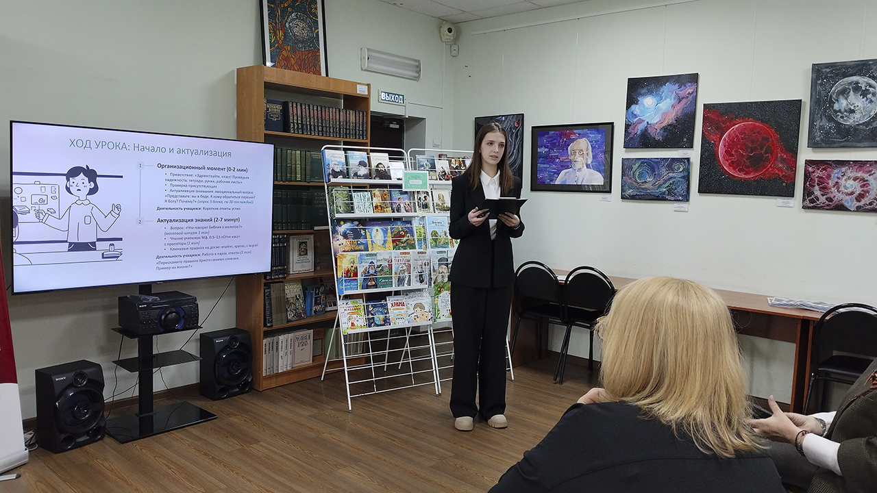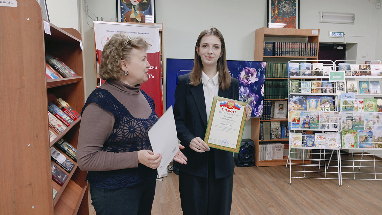Заведующая сектором православной литературы и духовно-просветительского центра «Благовест» Ульяна Николаевна Голубцова рассказала о работе центра и о VII окружном конкурсе чтецов «Святочный рассказ».