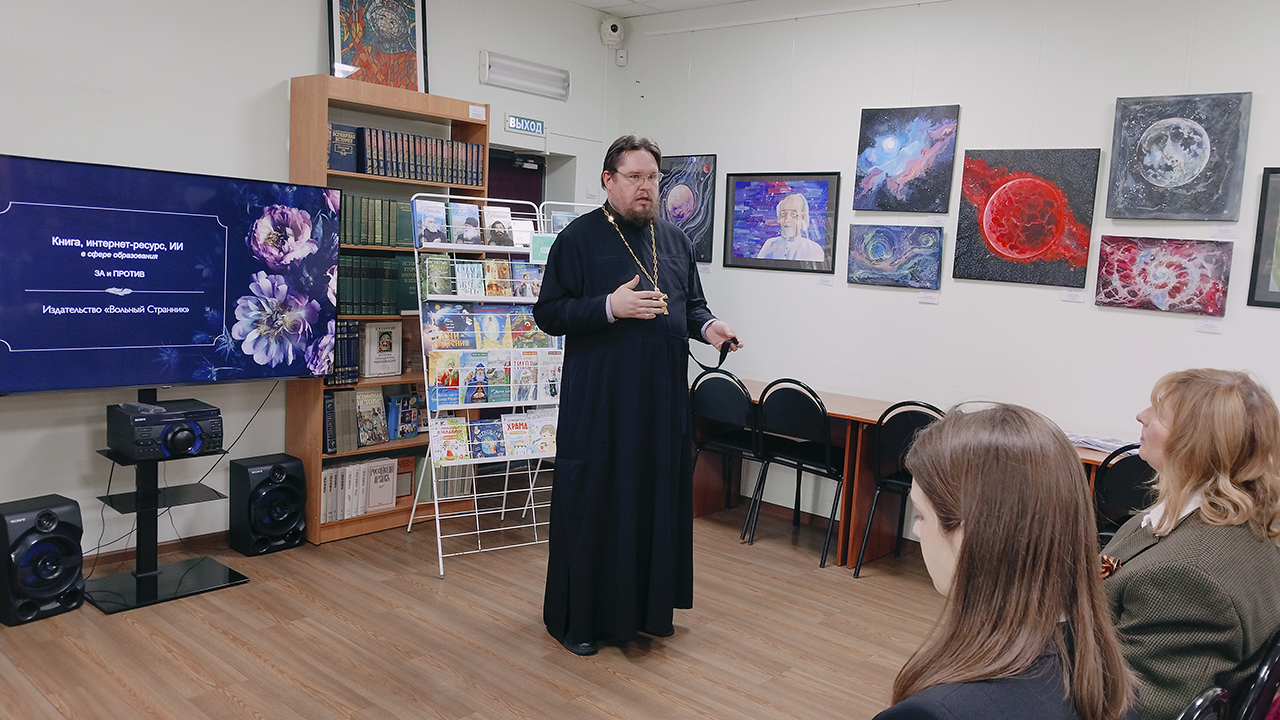 Ведущий редактор православного издательства «Вольный Странник» Анастасия Георгиевна Горюнова-Борисова подготовила презентацию «Книга, интернет-ресурс, ИИ в сфере образования». Где осветила актуальную тему – можно ли заменить книгу реального автора измышлениями ИИ, который порой откровенно переделывает цитаты, а порой и смысловое содержание, и факты. Это равносильно тому, как нельзя заменить живые цветы на искусственные.