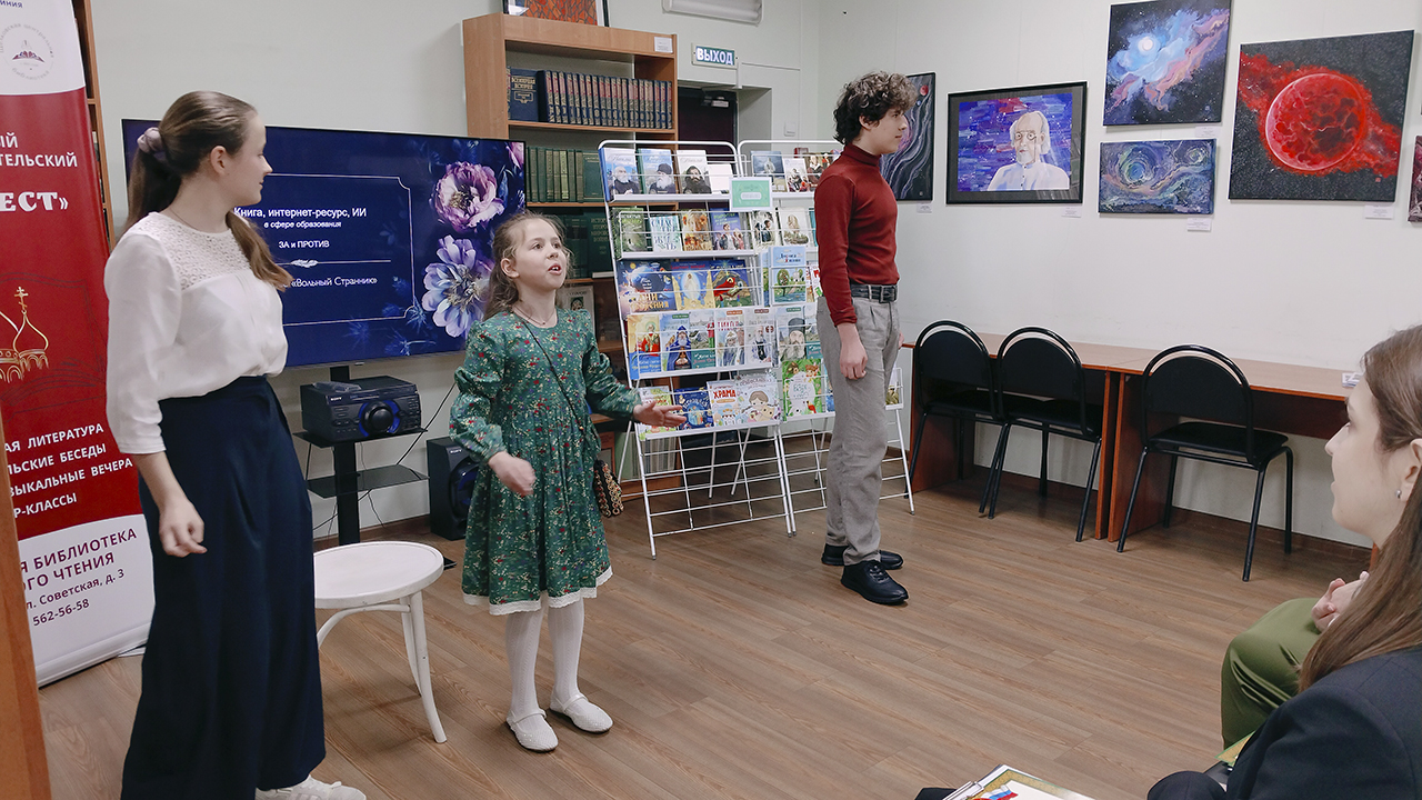 Ярким акцентом мероприятия стало выступление Лауреатов 1 степени конкурса в «Семейной номинации» Кравцовых Серафимы, Евдокии и Петра с произведением О.Генри «Дары волхвов».