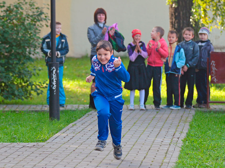 Хлопая в ладоши и поддерживая одноклассников ребята стремились друг за другом «выше» и «сильнее». Как необычно было им видеть своих учителей с секундомерами, линейками и прыгалками. И вот учитель математики дает сигнал старта и ученики спешат пробежать «30-метровку» не менее успешно, чем решают задачки на уроке. А вот учитель русского языка подбадривает ребят не в правописании, а в дальности прыжков. Учитель английского языка считает по-английски количество отжиманий. Администрация гимназии, учителя и классные руководители не только подготовили мероприятие, но и сами приняли активное участие в празднике и радовались вместе с детьми их спортивным «пятеркам».