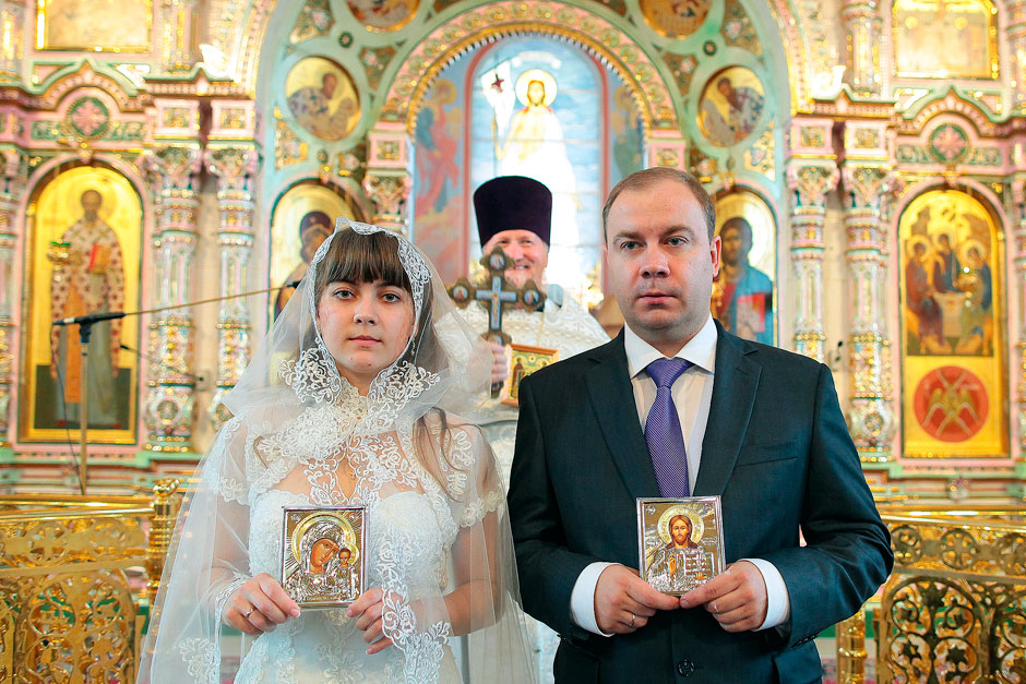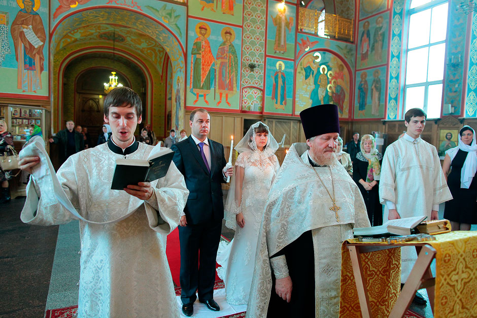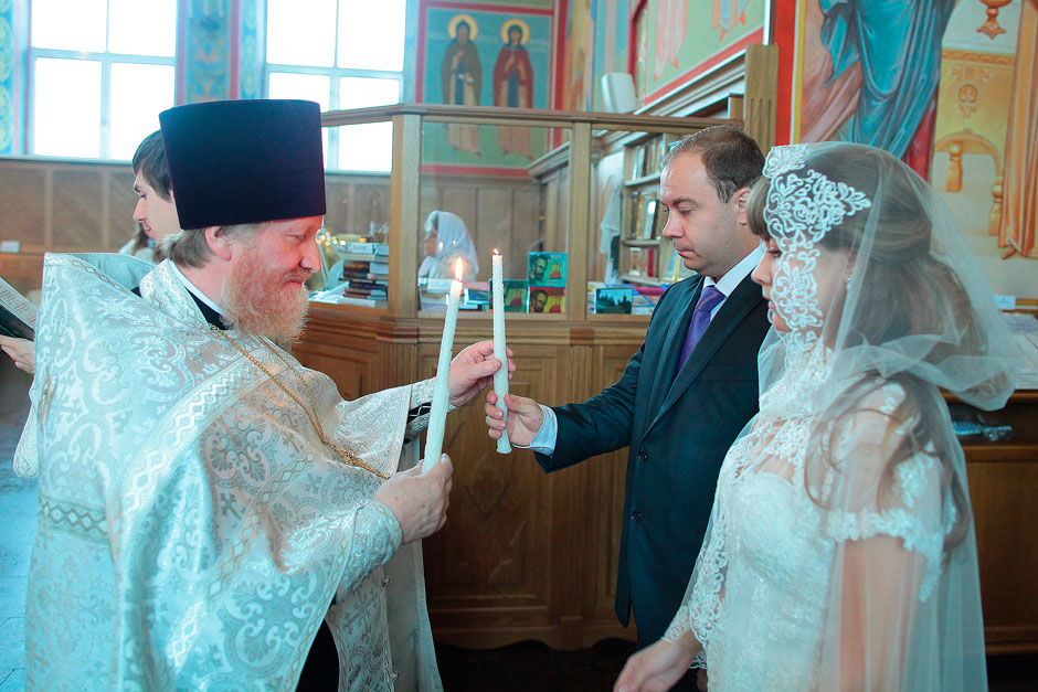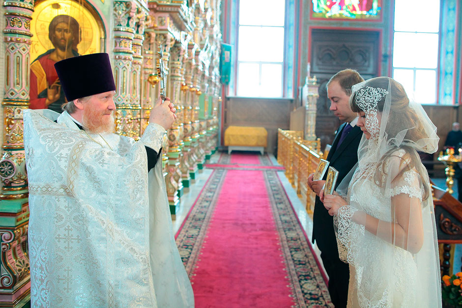 После богослужения протоиерей Андрей зачитал Послание Святейшего Патриарха Кирилла в день памяти святых благоверных князей Петра и Февронии и в сослужении духовенства собора отслужил праздничный молебен святым Муромским чудотворцам, а позже совершил таинство Венчания над молодоженами Максимом и Марией.